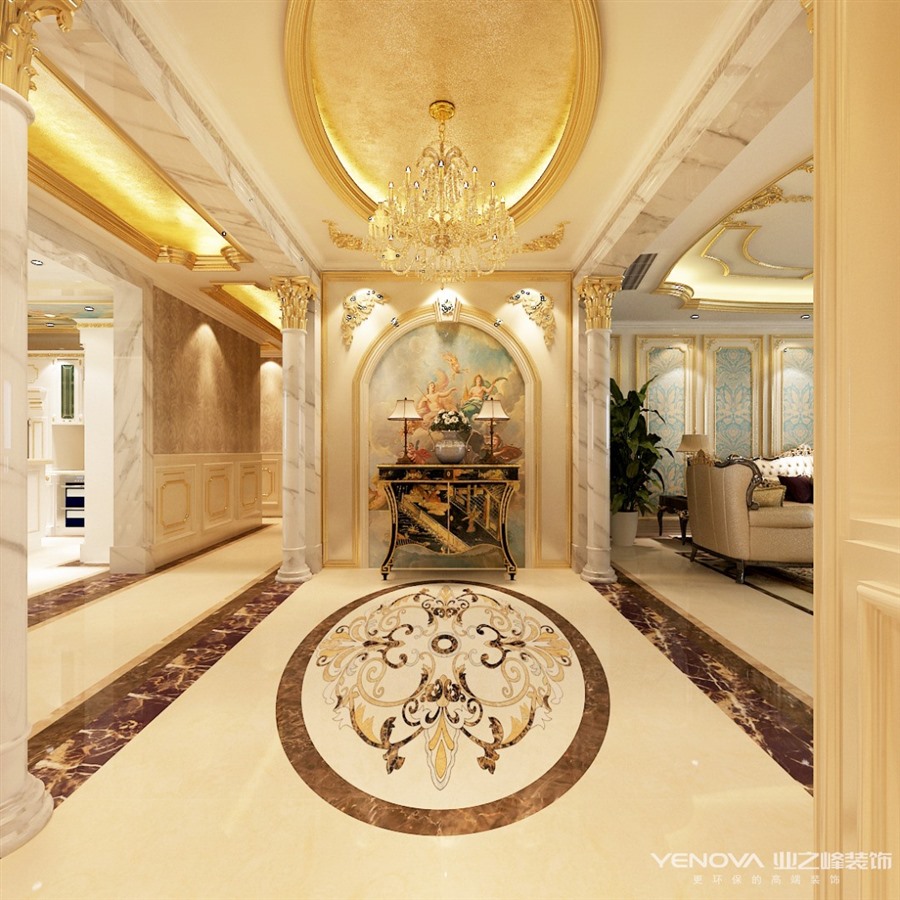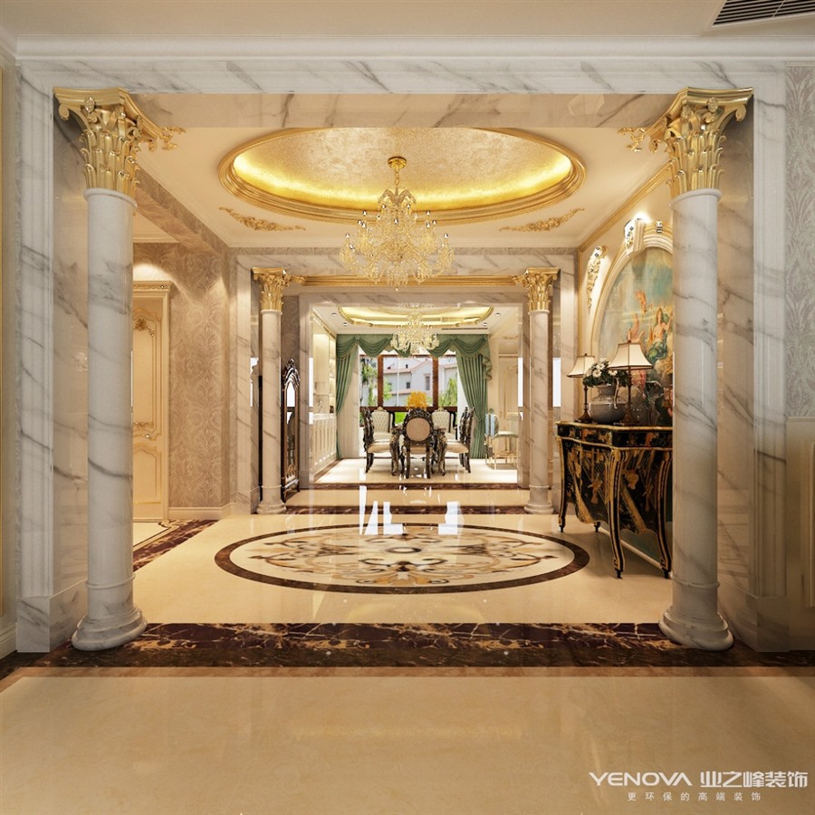 本案布局上突出轴线的对称,恢宏的气势,豪华舒适的居住空间,效果贵族风格,高贵典雅。细节处理上运用了法式廊柱、雕花、线条,制作工艺精细考究。