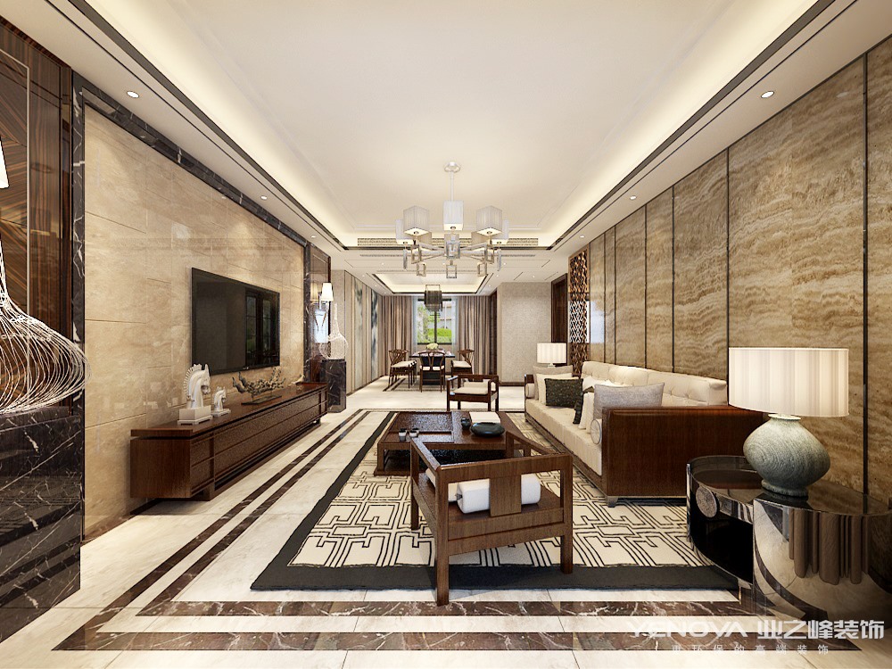 在中国元素风靡全球的当今时代,古典风格与现代风格的激情碰撞,衍生出了无数素雅含蓄、简约大气的现代风格空间,呈现出了异常浓郁的东方情调。本案中墙板与石材的碰撞,壁布与金属线条的交汇,在现代简约的基础上辅以木质元素的点缀,呈现一种硬朗的新中式风格。