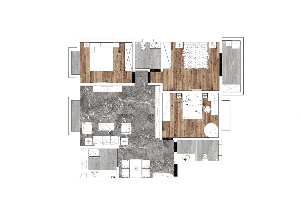 本案设计以木结构为主,比较对称。另外会增加国画、字画、挂饰画等做墙面装饰,另外会增加些盆景以求和谐。整体感觉比较稳重,成熟。大体的设计比较简洁。从装饰部分选材也比较广泛,搭配时尚,效果比古典中式风格清爽, 本案设计风格的特点,是在室内布置、线形、色调以及家具、陈设的造型等方面,吸取传统装饰“形”、“神”的特征,以传统文化内涵为设计元素,革除传统家具的弊端,去掉多余的雕刻,糅合现代西式家居的舒适,根据不同户型的居室,采取不同的布置,讲究空间的层次感户型图