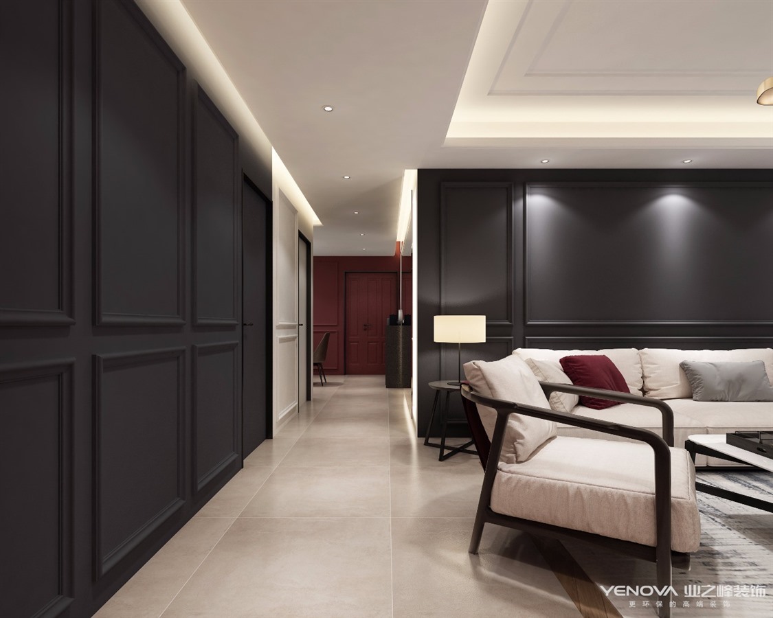 本案设计追求的是空间的实用性和灵活性。空间是根据相互间的功能关系组合而成的,而且功能空间相互渗透,空间的利用率达到最高。空间组织不再是以房间组合为主,空间的划分也不再局限于硬质墙体,而是更注重会客、餐饮、学习、睡眠等功能空间的逻辑关系。通过家具、吊顶、地面材料、陈列品甚至光线的变化来表达不同功能空间的划分,而且这种划分又随着不同的时间段表现出灵活性、兼容性和流动性。