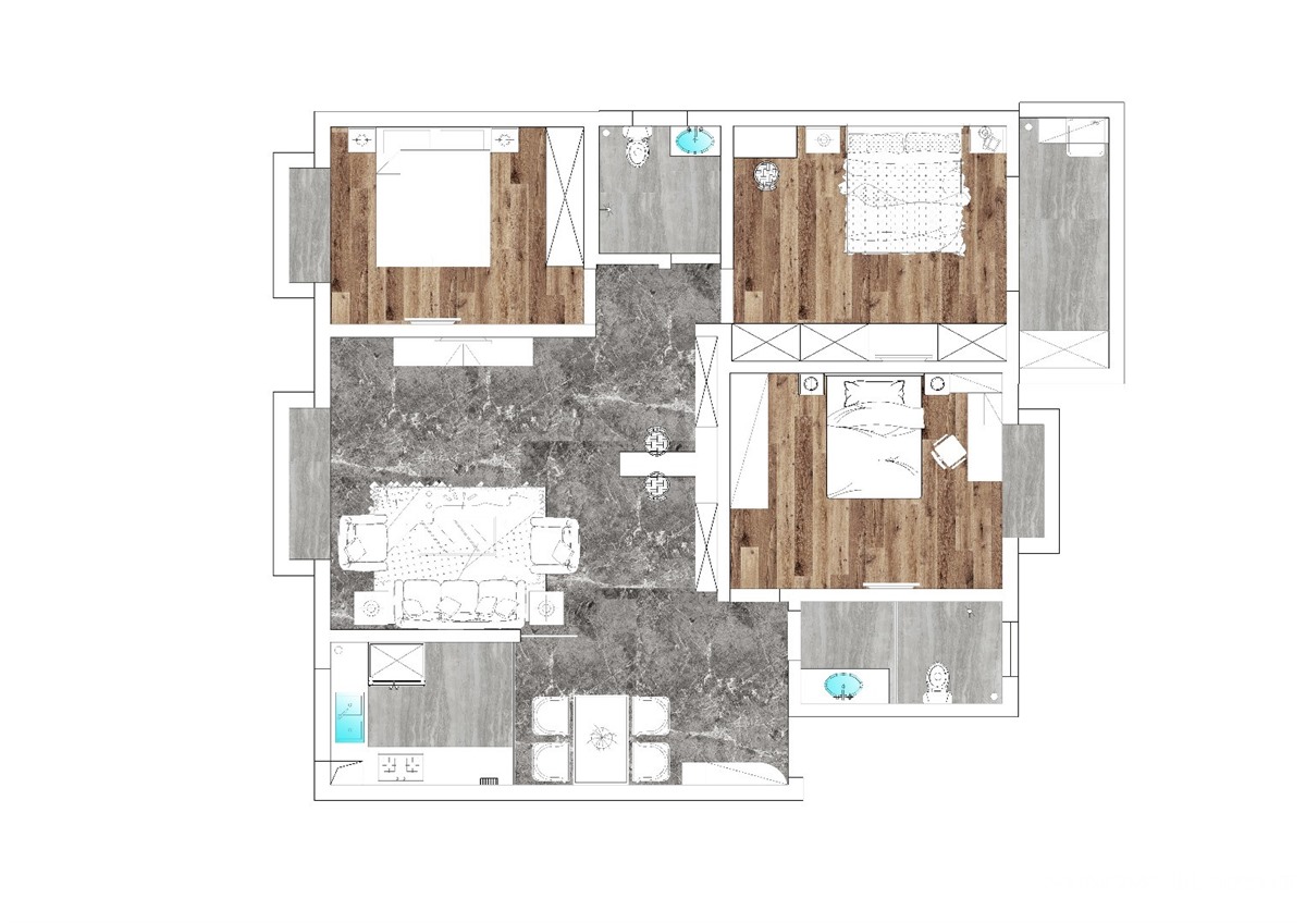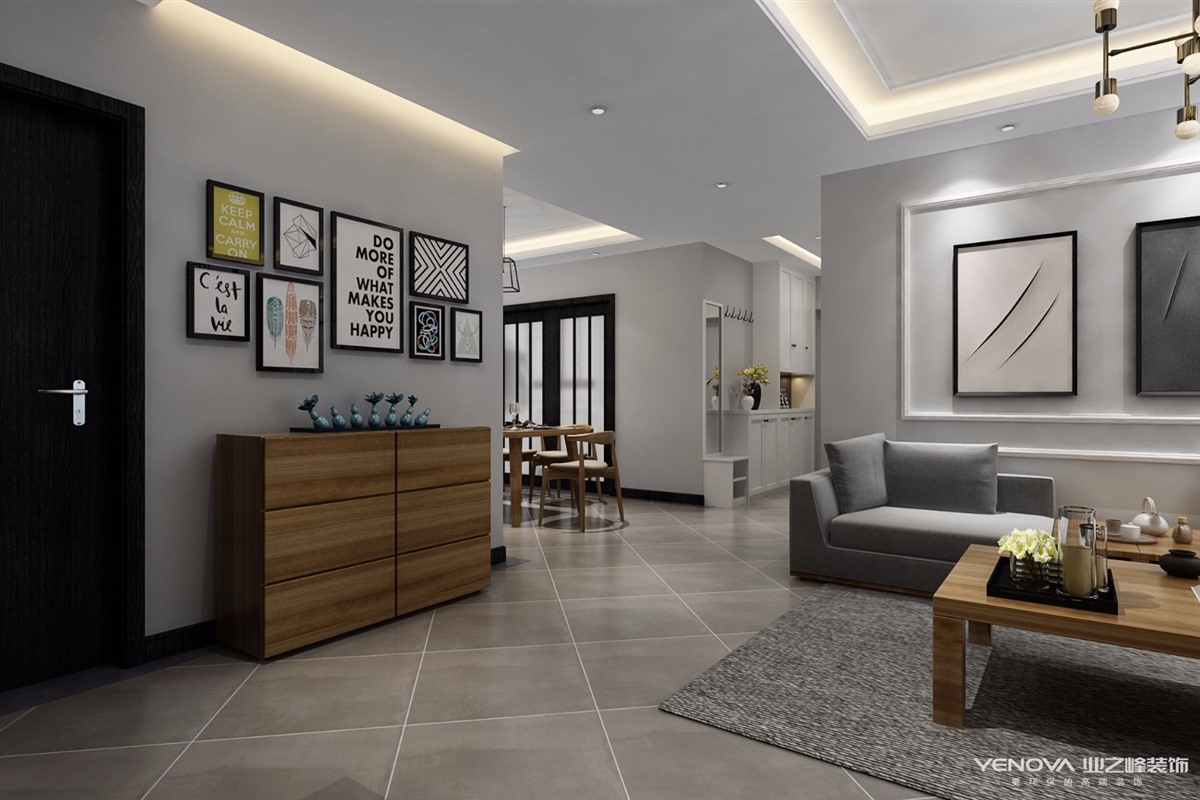 本案设计采用简洁、硬朗的线条设计,在图案上要求精致,但是在装修结构的线条上追求简洁,而且多样式的线条可以使空间显得有层次感,设计风格在装修中,对于色彩的使用也是很有讲究的。使用的颜色为米色,主要为了打造一种清新沉稳的效果。其户型图