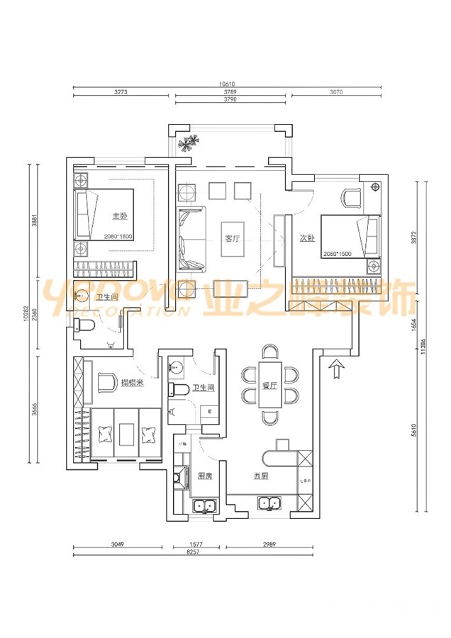 小区:恒润雅筑 面积:160㎡ 户型:三居 风格:北欧风格