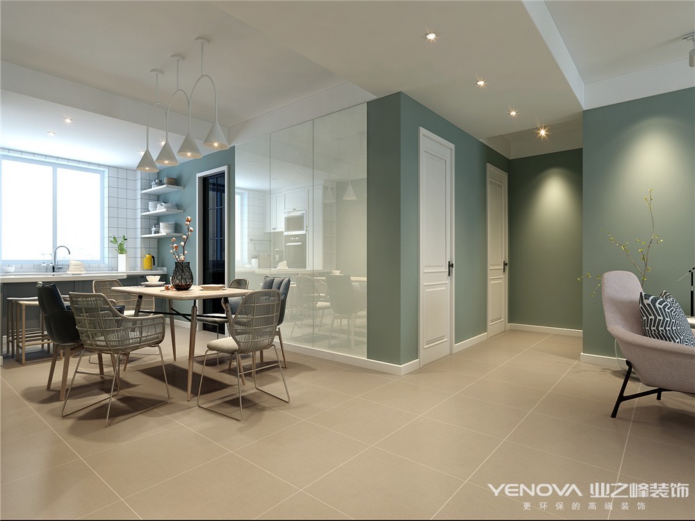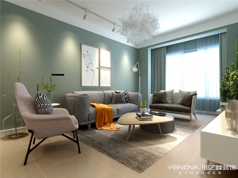 本案的设计风格为现代北欧风格,简单的色彩,洁净的清爽感,让居家空间得以彻底降温,客厅空间的重点在于家具的选购与色彩以及布品的搭配,协调。不对称的技巧,让每一个细节的铺排,都呈现出令人感觉舒适的气氛,开放式的厨房,满足使用功能同时,在视觉上也更开阔,且没有光暗角,使狭长的房间实现多功能高频率的使用。