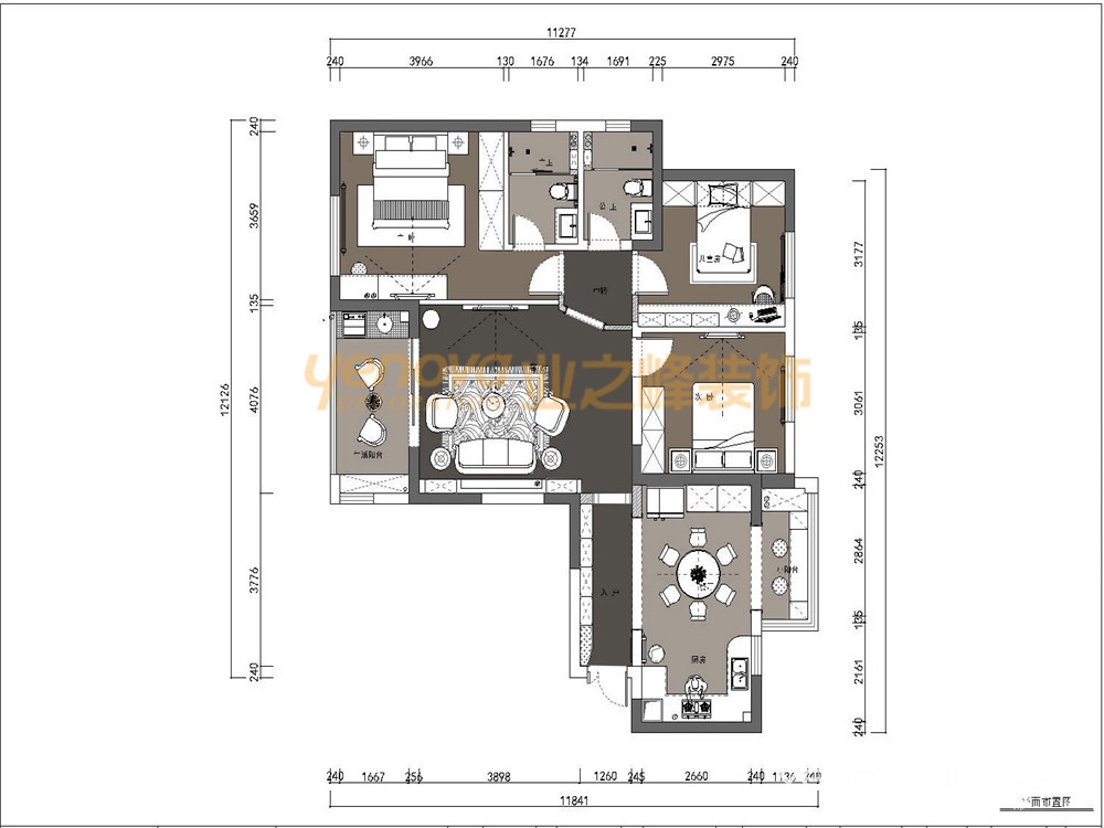 本案的设计风格为美式乡村风格,美式乡村风格摒弃了繁琐和奢华,并将不同风格中的优秀元素汇集融合,使风格变得更加轻松、舒适。