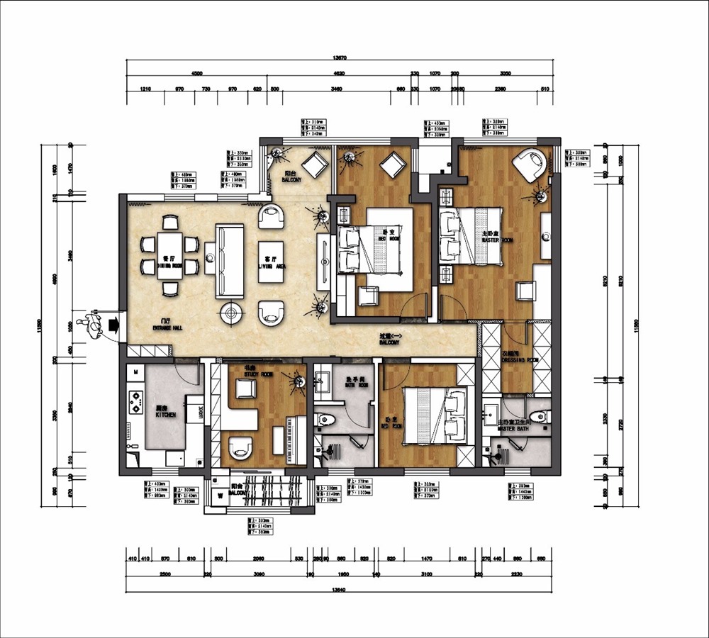 小区:海德堡 面积:128㎡ 户型:三居 风格:现代简约风格