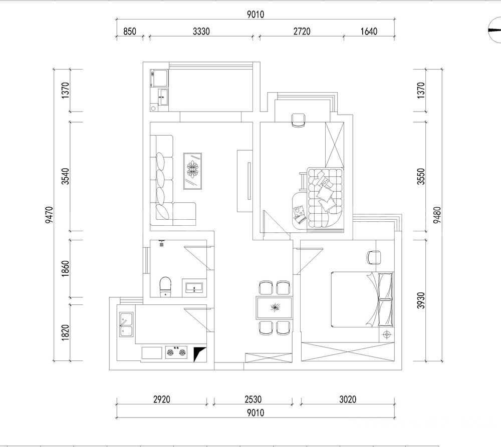 小区:宏江中央广场 面积:90㎡ 户型:三居 风格:北欧风格