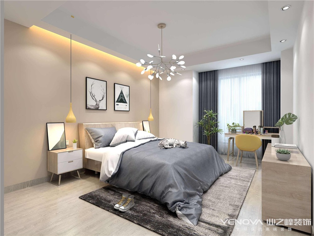 本案为现代风格装修作品,夫妻二人,有一对可爱的双胞胎,父母前期会过来帮忙带小孩儿,考虑到这些因素,保留了原户型的三个卧室,儿童房使用高低床;夫妻二人都喜欢简单的东西,所以推荐了他们装现代风格,整个装修摒弃了多余的装饰,以实用为主,尽量增加多的储物功能。