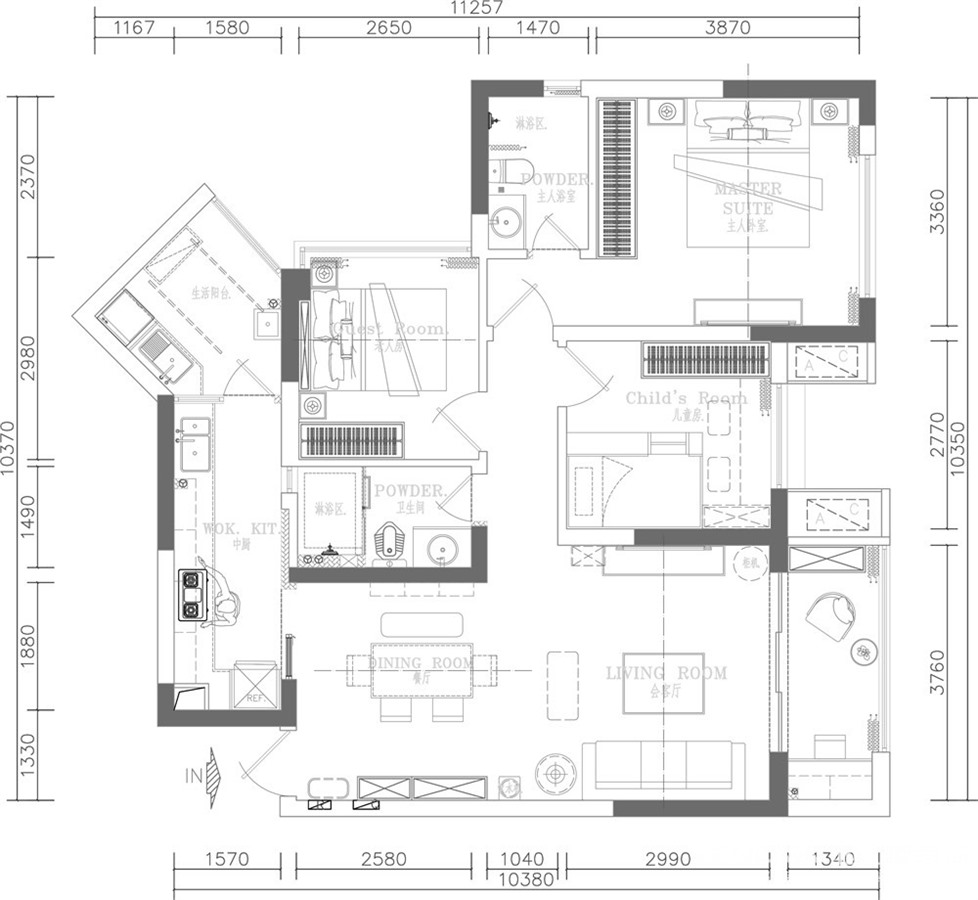 101㎡三居现代简约风格双铁广场