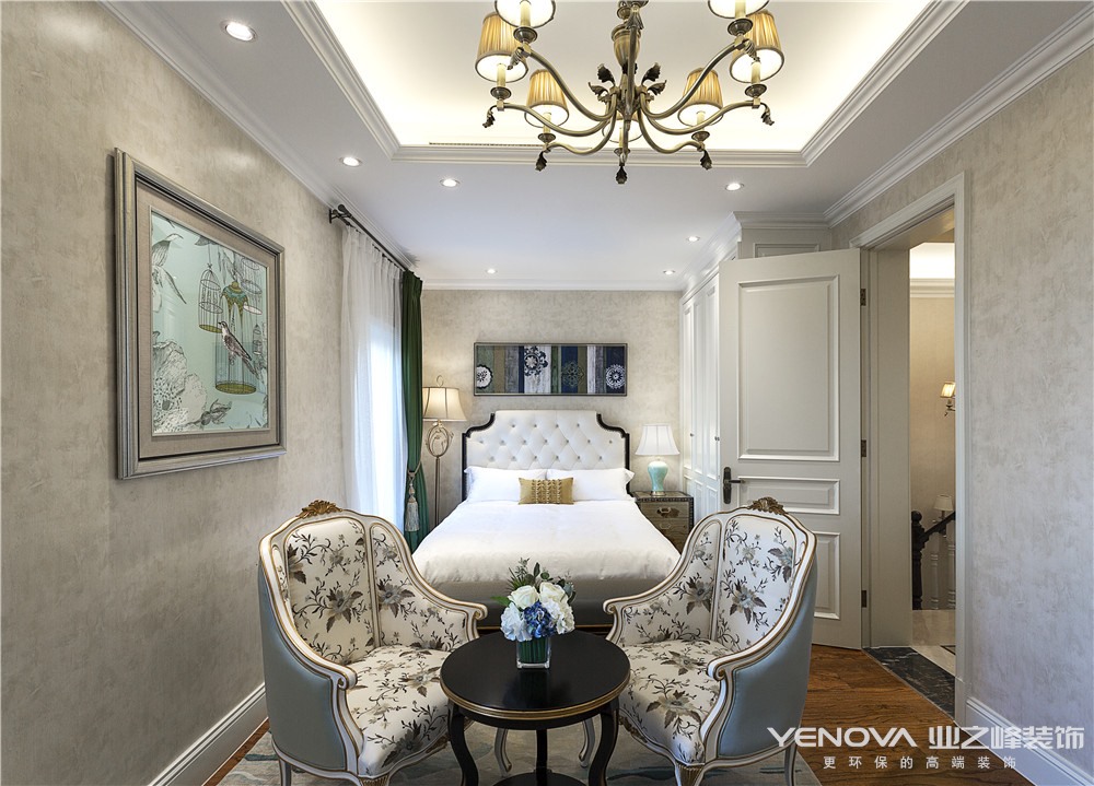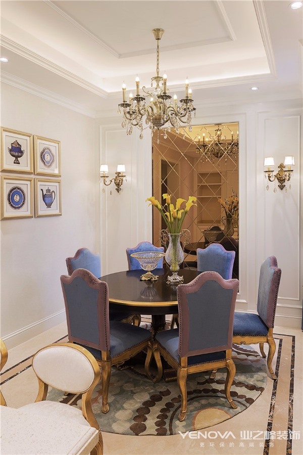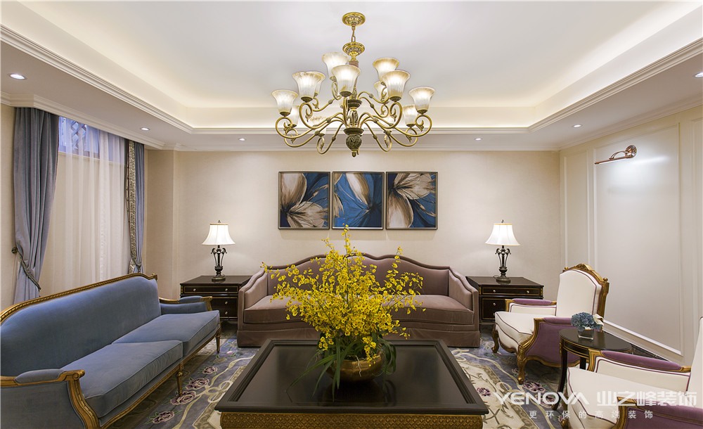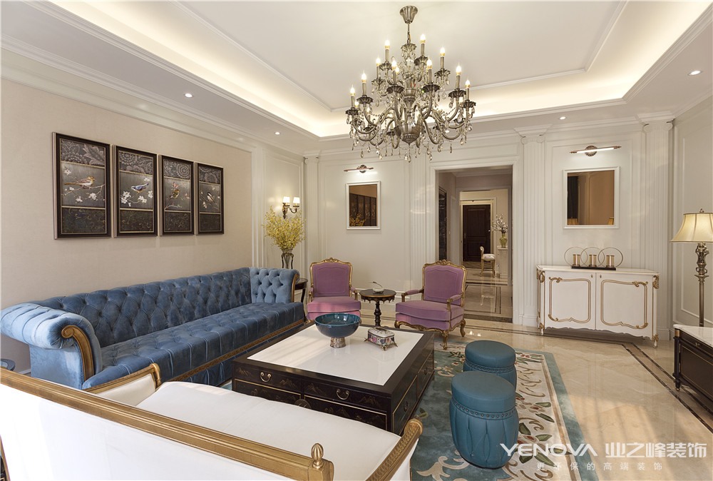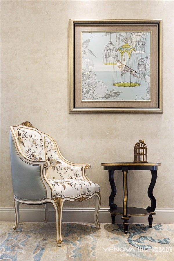 本案定位法式风格,在硬装整体典雅和稳重的基础上融入法式浪漫的韵味,此次方案设计中我们以象征自然和平最具浪漫的代表的元素运用到家具、布艺、装饰挂画中,选用曲线优美的法式家具,晶莹剔透的水晶吊灯,打造出属于法兰西的骄傲与浪漫。
