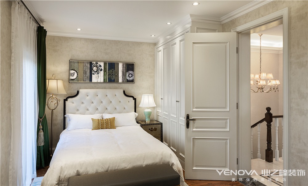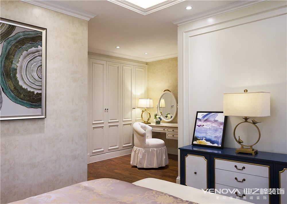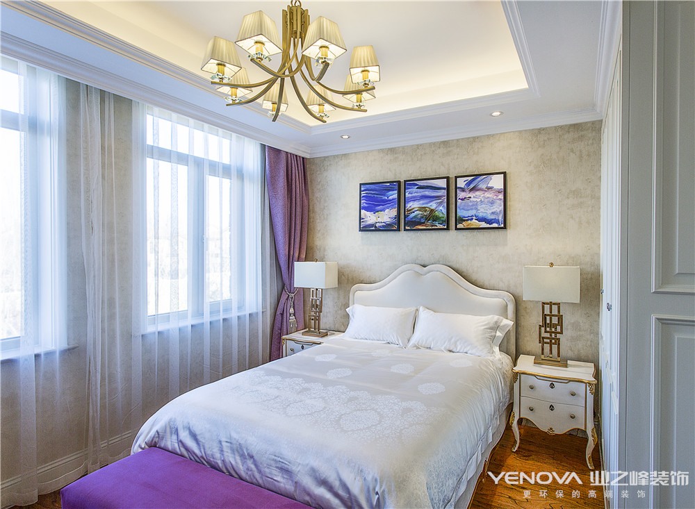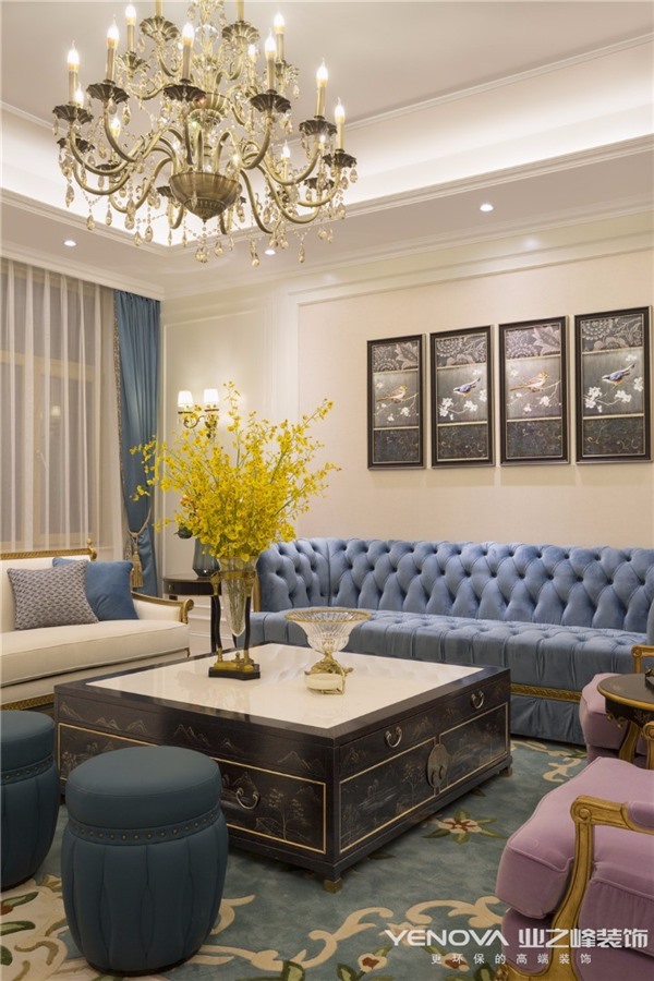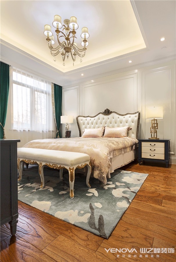 本案定位法式风格,在硬装整体典雅和稳重的基础上融入法式浪漫的韵味,此次方案设计中我们以象征自然和平最具浪漫的代表的元素运用到家具、布艺、装饰挂画中,选用曲线优美的法式家具,晶莹剔透的水晶吊灯,打造出属于法兰西的骄傲与浪漫。