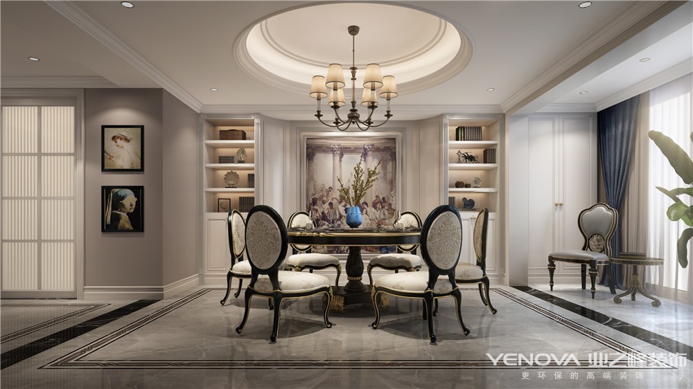 有熊孩子的家,最重要的就是收纳空间,本案就是一个有着一个熊孩子和一个即将降临的小天使的 五口之家的美式住宅。将原有房子不合理的区域划分去掉,打造比较合理的格局,在这基础上将主 人喜欢的美式呈现出来。美式风格给人一种简约而不简单的感觉,没有复杂的空间布局,非常符合 现代人的品味,不管的从房屋的灯饰,还是地板,没有一个繁琐的设计,给人感觉上去非常温暖、 高雅。美式风格的色彩搭配较为单一,没有过多的靓丽的色彩,整体给人感觉非常的明亮,让人一 眼看上去非常的温暖。本方案整体色调偏浅,所以选用了颜色较深的家具来装饰。