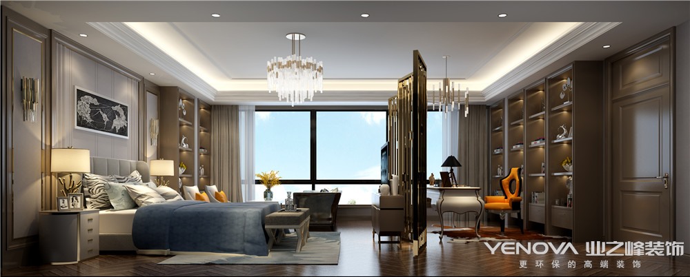 这是一套新古典混搭的作品,浓郁但又不失生机的香槟金,是一种独特而又复古的色调,恰到好处的介于复古和时尚之间,给整个屋子带来一种时髦韵味。