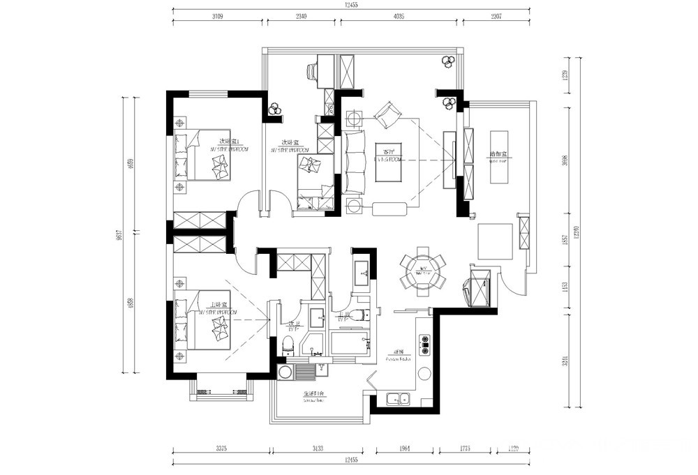 137㎡三居美式风格碧华邻