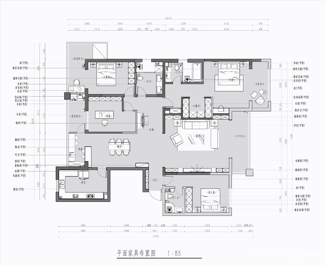 小区:曲江公馆和园 面积:255㎡ 户型:四居 风格:现代简约风格