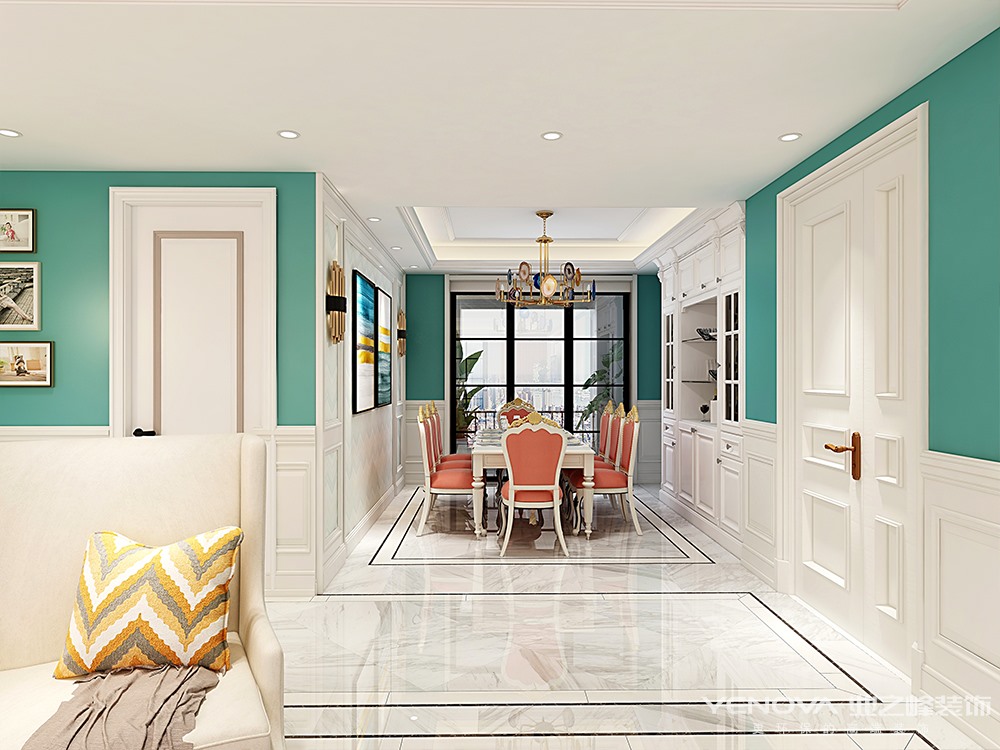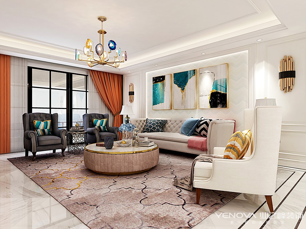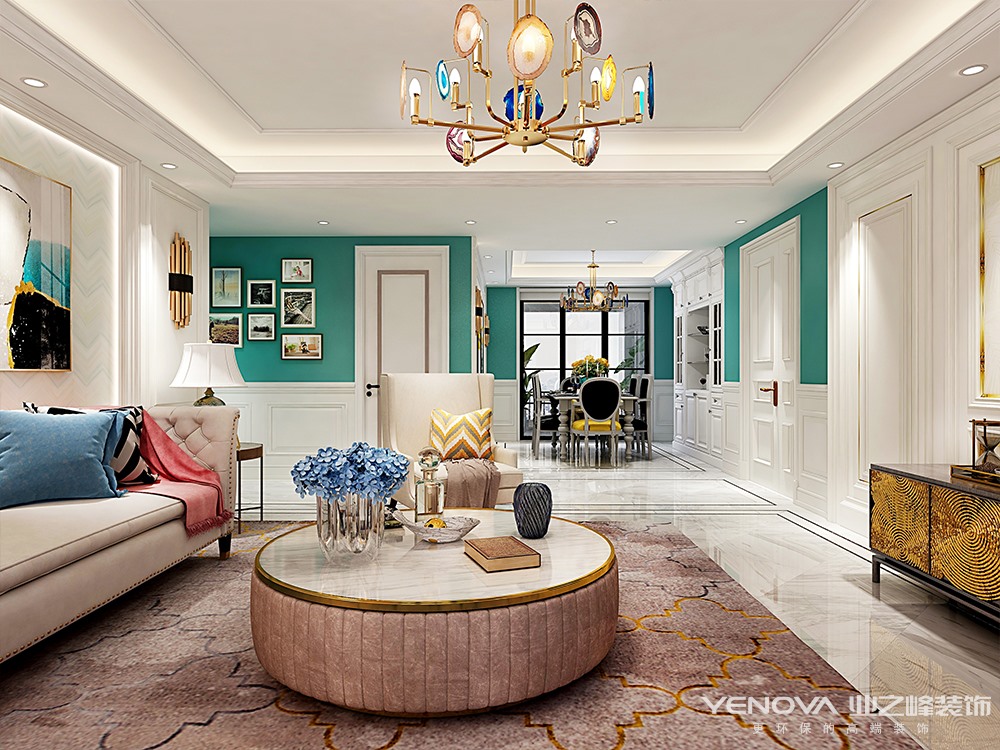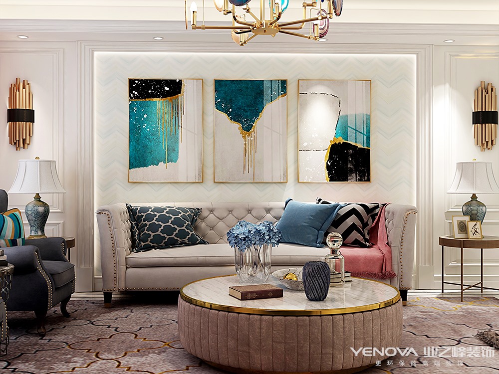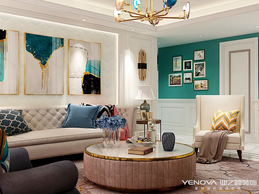 美式轻奢,代表着自由与贵气,低调奢华,进取与传统,以高品质、设计感、舒适、简约为特点,整个空间以米白色、绿色为基调,米白色的内敛、朦胧、低调,烘托出软装的精致和质感,赋予了高贵的气质,让饰品在浅色调的空间显得更加精彩夺目。