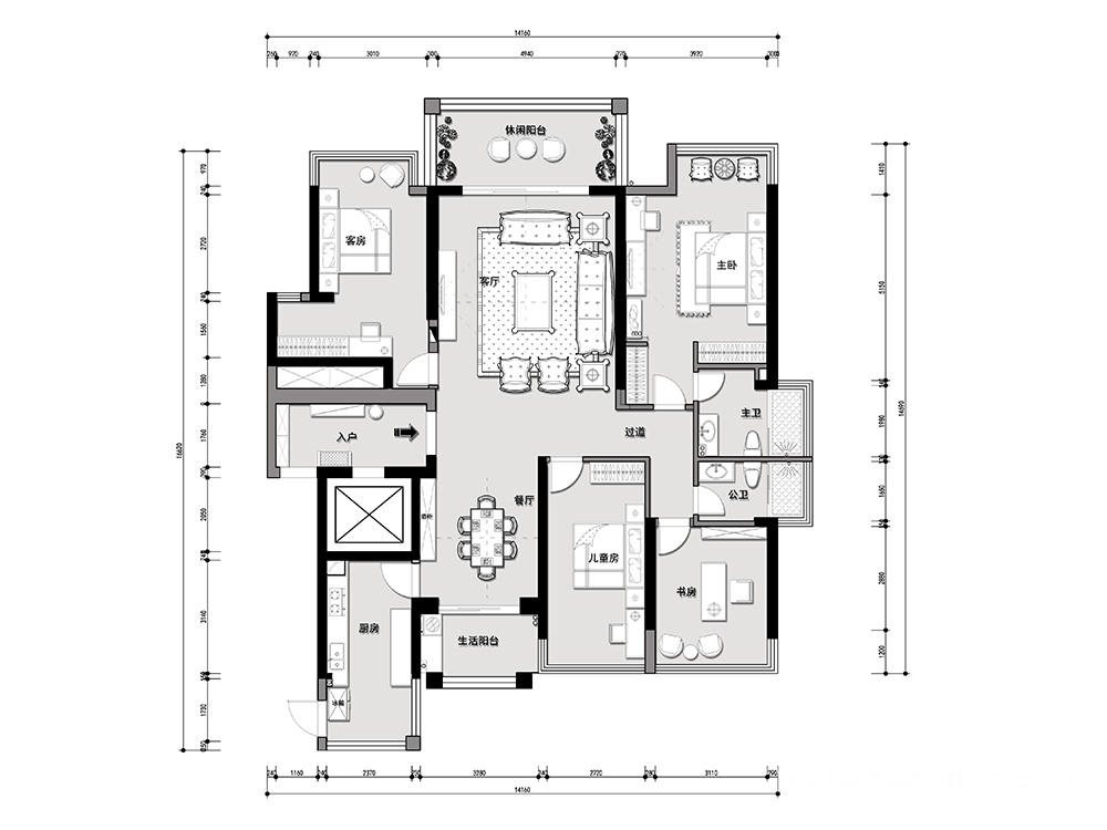 小区:龙光玖珑湖 面积:165㎡ 户型:四居 风格:现代简约风格