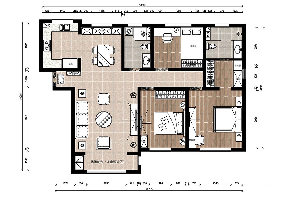 101㎡三居现代简约风格融科瀚堂