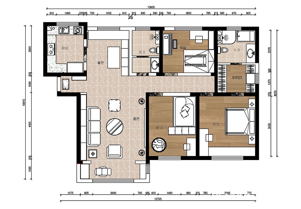 小区:融科瀚堂 面积:101㎡ 户型:三居 风格:现代简约风格