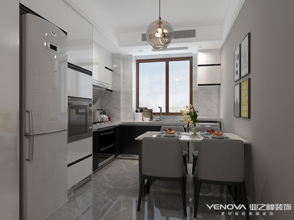 黑白色的橱柜,整洁清爽,储物空间充足。同时厨房、客厅视线皆能串连,无论在公共领域的任一地方,都能了解家人动向。