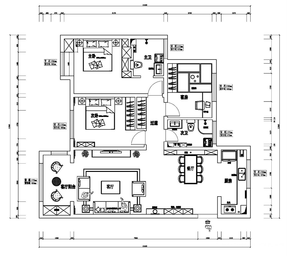 小区:公园5号 面积:140㎡ 户型:三居 风格:新中式风格