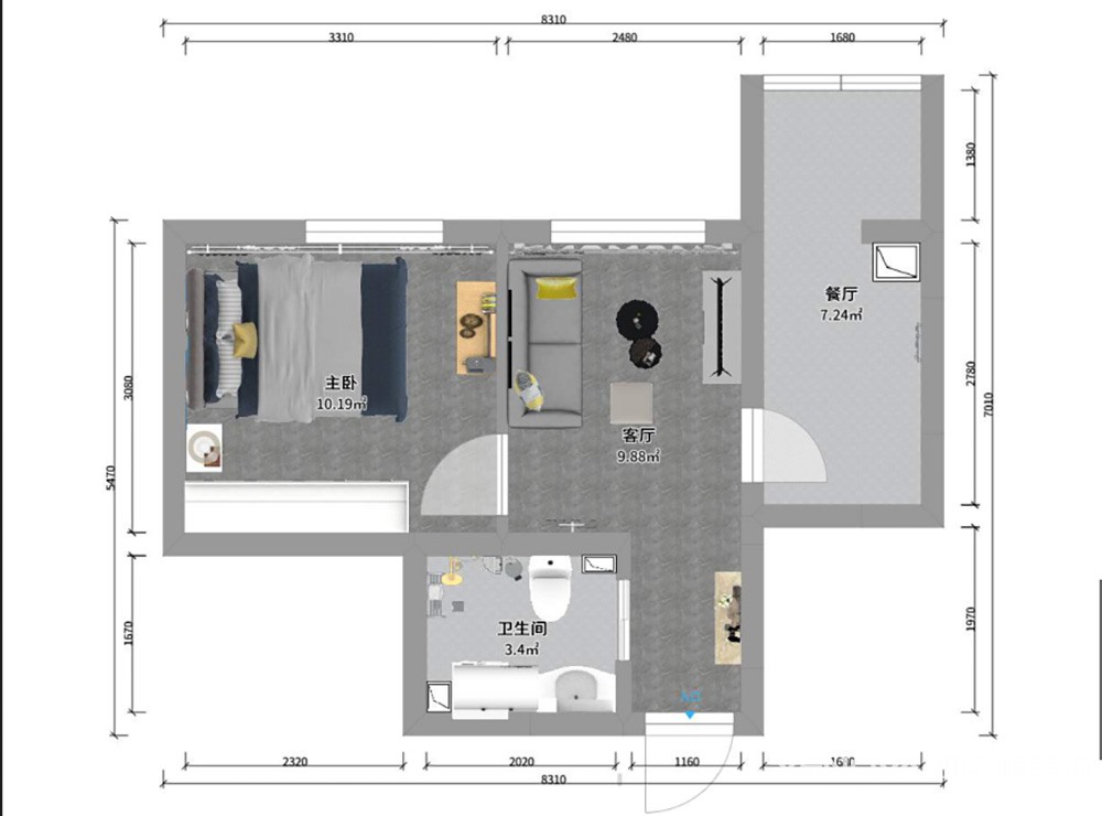 小区:东瑞家园 面积:50㎡ 户型:一居 风格:现代简约风格