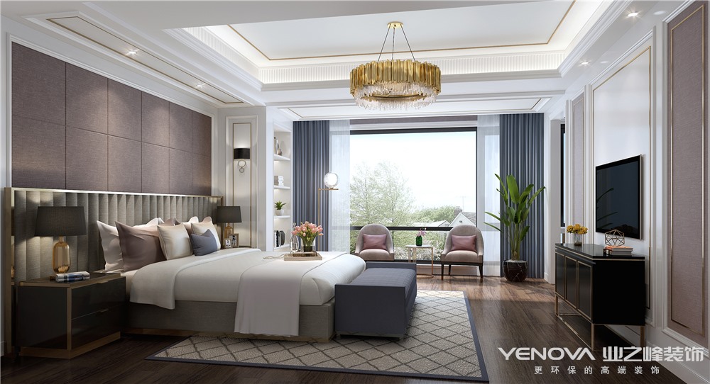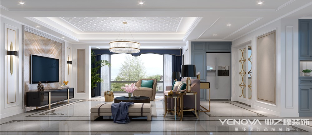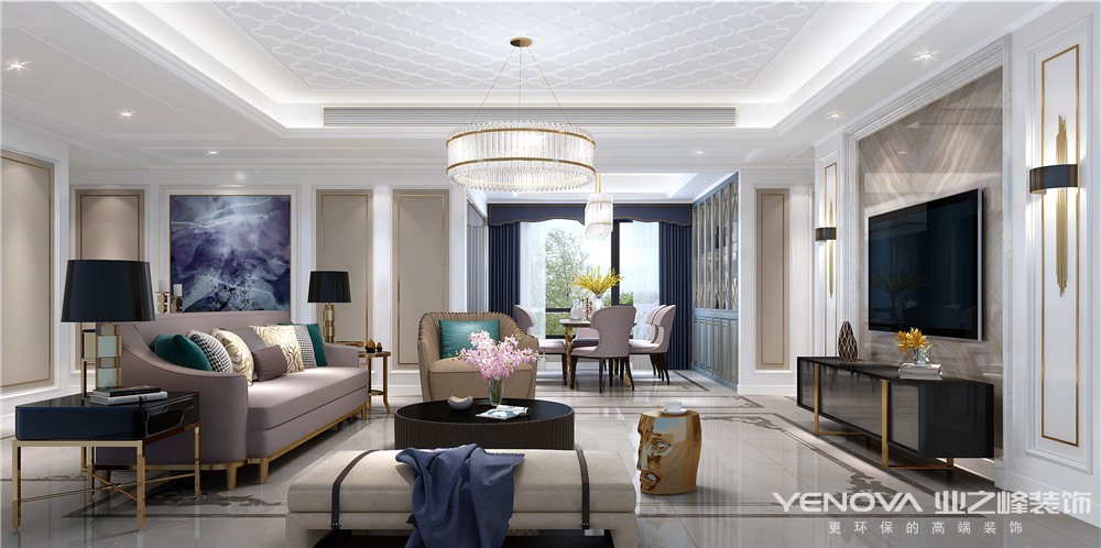 成都业之峰装饰轻奢风格作品:本案为白色木饰面搭配轻金属营造轻奢感,加以石膏线条与墙板作为硬装装饰。配以暖色和冷色作为撞色,凸显了整个空间的大气与时尚。