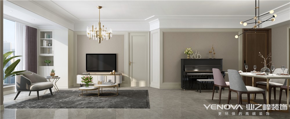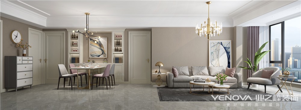 成都业之峰装饰现代轻奢风:简单的墙面装饰,配以金属质感的家具,使空间通透自然,不同区域的色彩区分,通过化繁为简的设计以展现其华美的优雅之感。