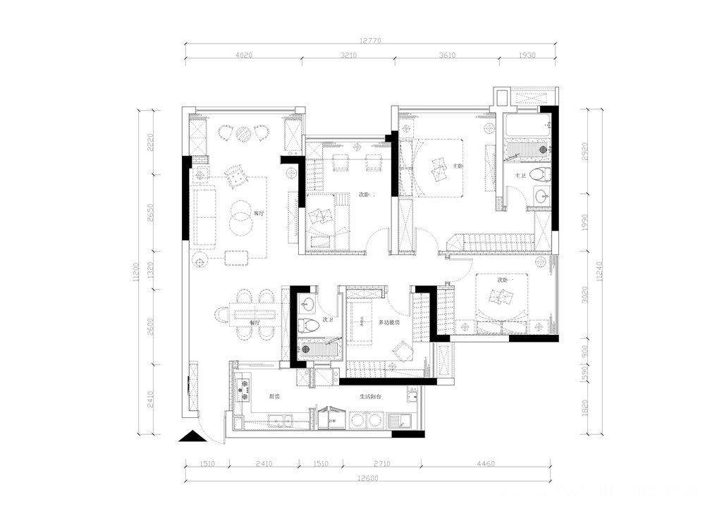 小区:金房大榕湾 面积:110㎡ 户型:三居 风格:现代简约风格