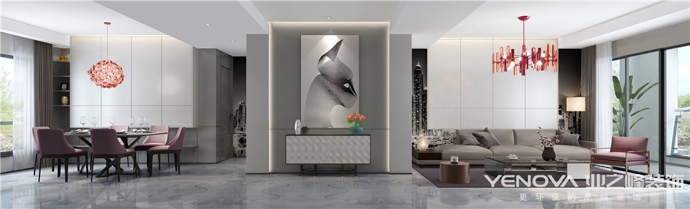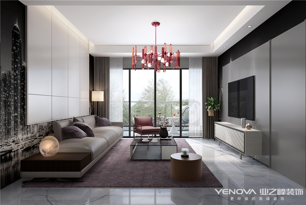成都业之峰装饰现代风格设计案例:整个方案围绕现代风格开展,简约大方时尚而不缺乏美感,用最简单的造型表达出最美的效果,又不缺乏功能性和实用性。空间整体色调以灰色和白色为主,灰色给人平稳安静的感觉,再配以红色作为点缀,活跃画面感让视觉上得到不一样的感受。家具选择以简单实用为主,挂画和配饰上,以简洁的画面,给人以温馨时尚的感觉。