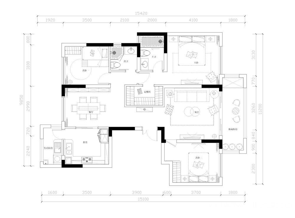 小区:龙湖听蓝湾 面积:106㎡ 户型:三居 风格:现代简约风格