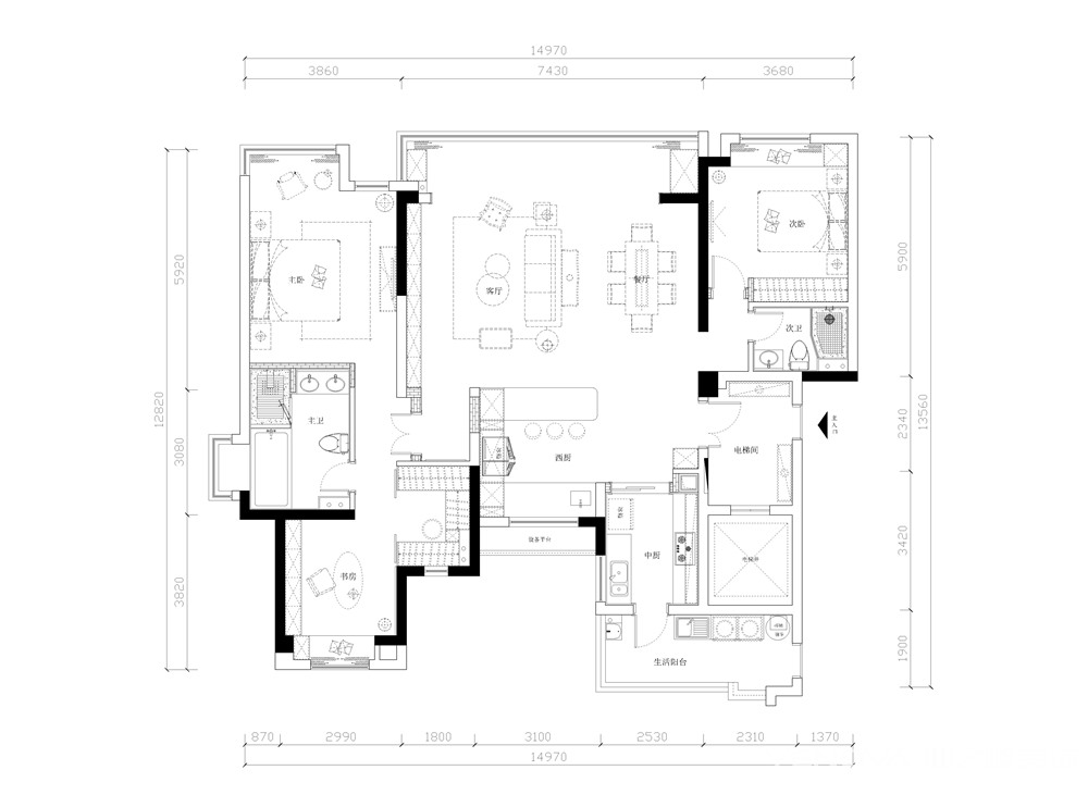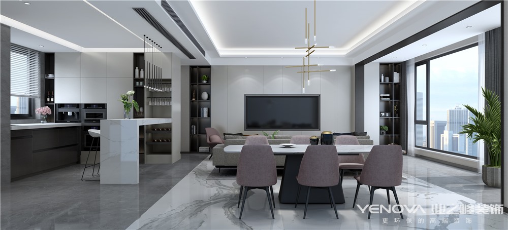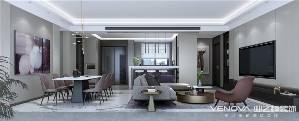 小区:龙湖紫宸 面积:134㎡ 户型:四居 风格:现代简约风格