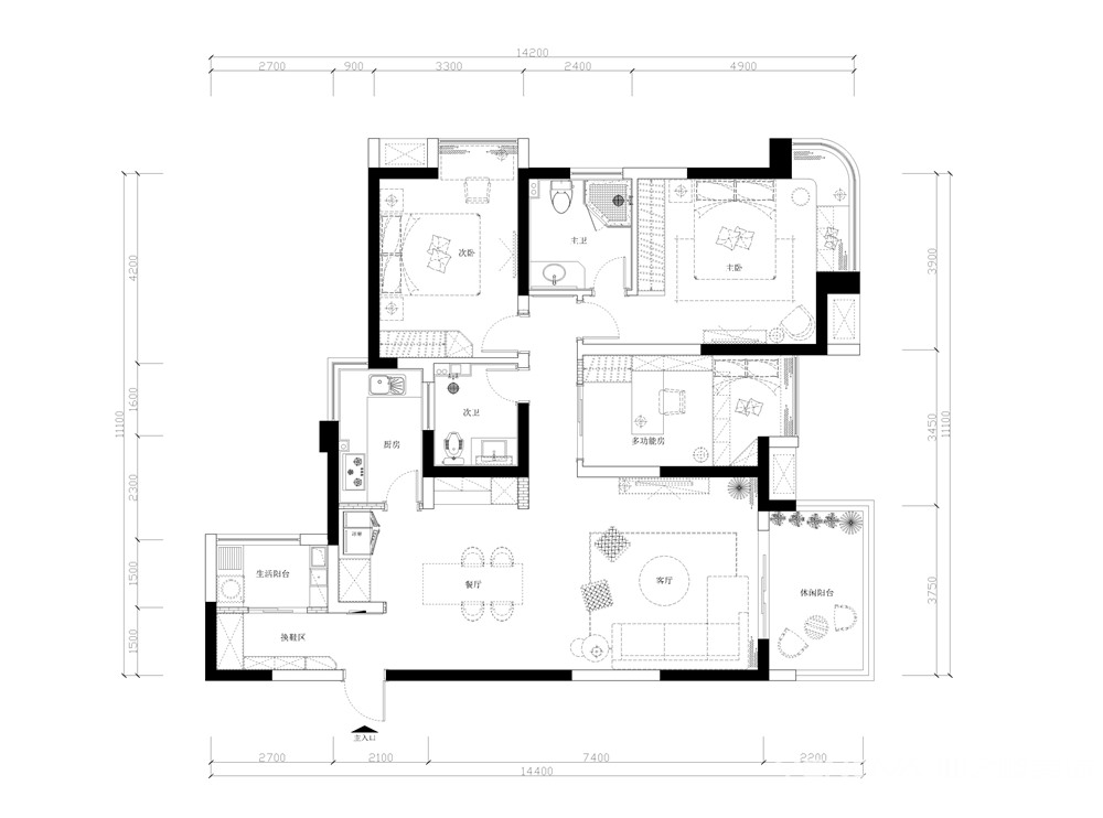 小区:望江橡树林 面积:115㎡ 户型:三居 风格:现代简约风格