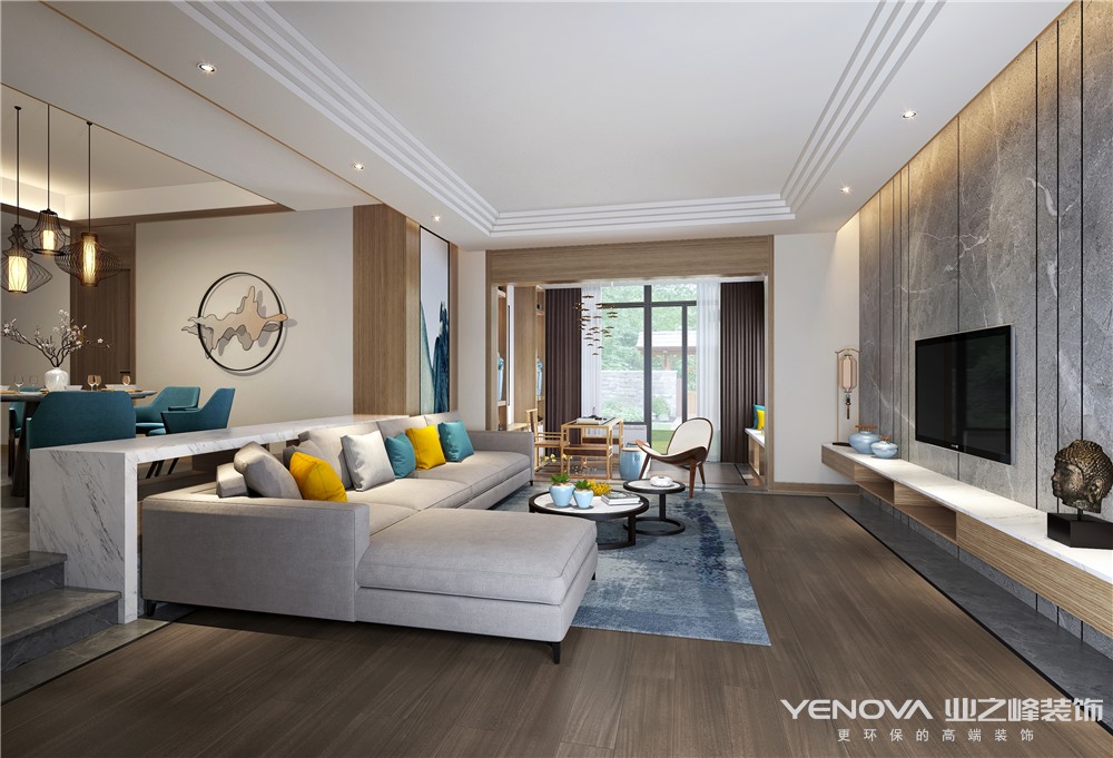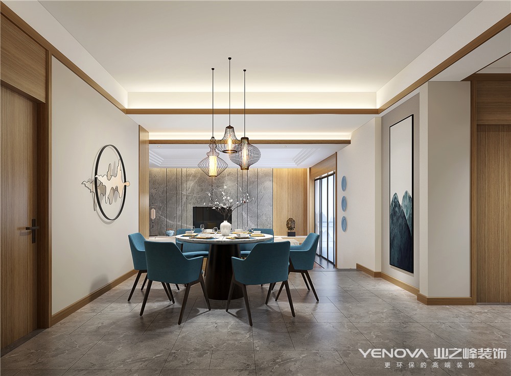 成都业之峰装饰设计案例:新中式是一种既继承了中国古典装饰的基本手法,又融合了现代简约的几何图案及装饰的设计风格,达到了新旧之间的深层次的完美碰撞。