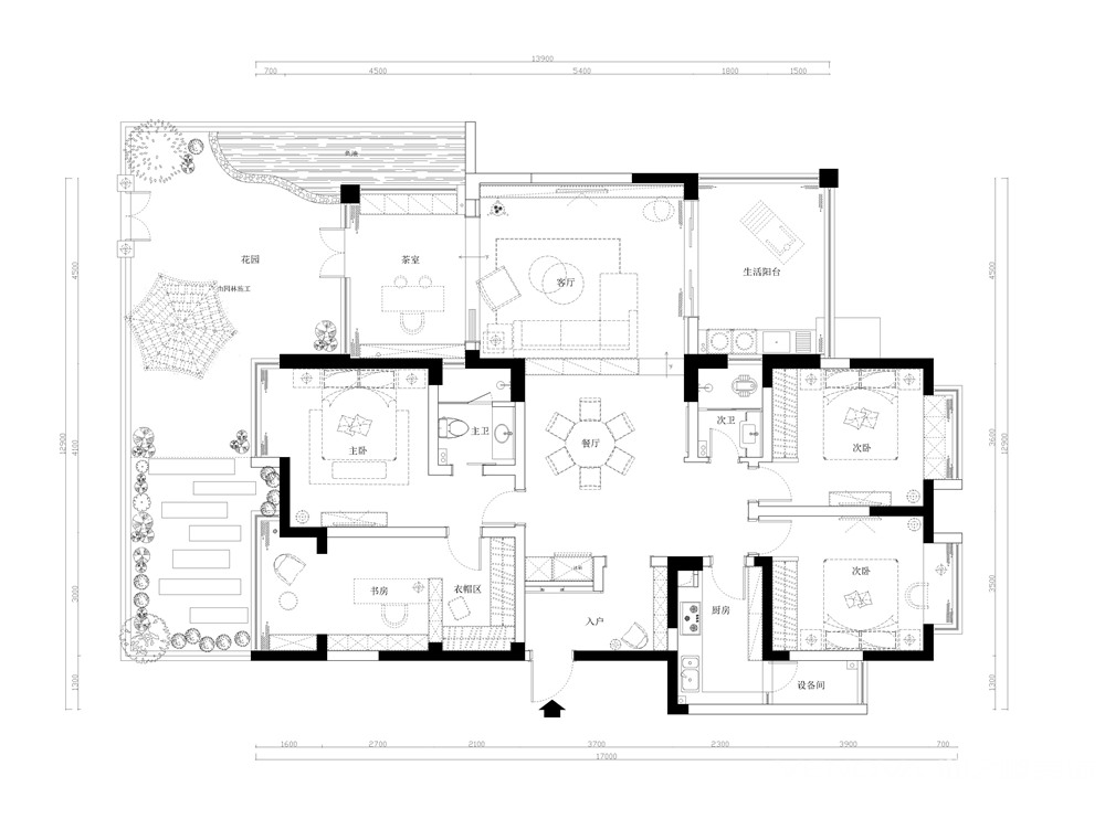小区:康河丽景 面积:157㎡ 户型:四居 风格:新中式风格