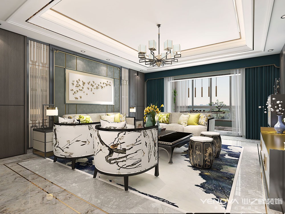 空间装饰多采用简洁硬朗的直线条。直线装饰在空间中的使用,不仅反映出现代人追求简单生活的居住要求,更迎合了中式家具追求内敛、质朴的设计风格,使新中式更加实用。