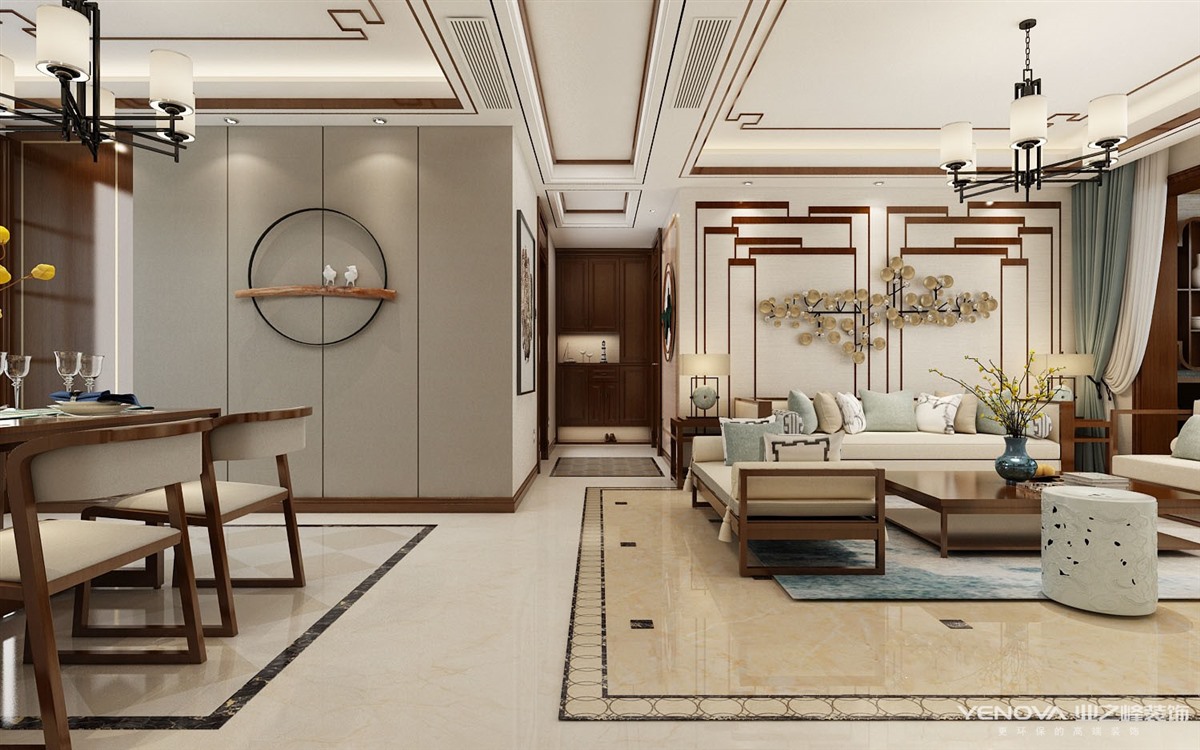 既有中式风格的古典高雅又含有现代风格的时尚元素,事实上新中式风格不是纯粹的元素堆砌,而是通过对传统文化的认识,将现代元素和传统元素结合在一起,以现代人的审美需求来打造富有传统韵味的事物,让传统艺术在当今社会得到合适的体现。这种极简主义的风格不仅永不过时,而且时间愈久愈散发出迷人的东方魅力。