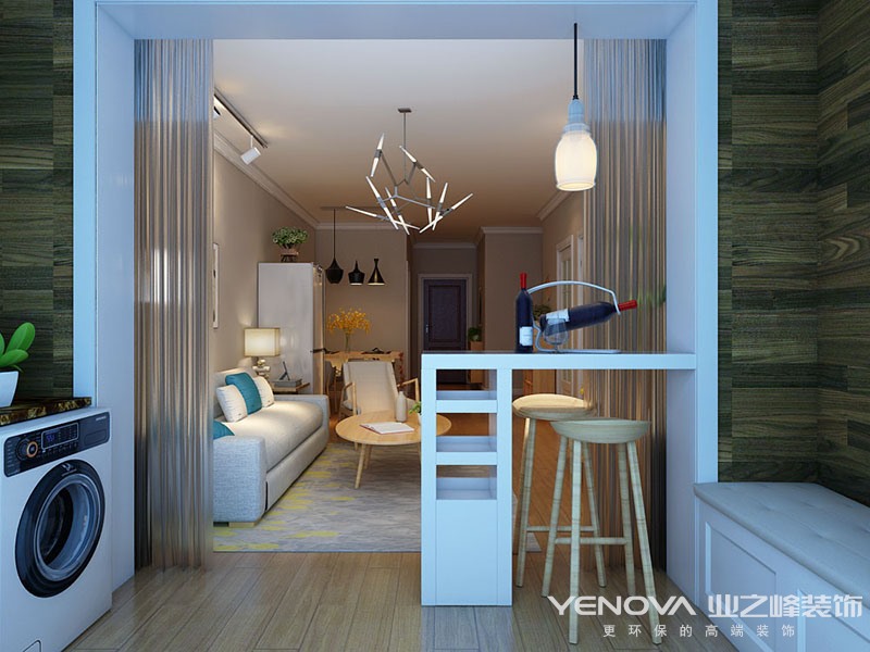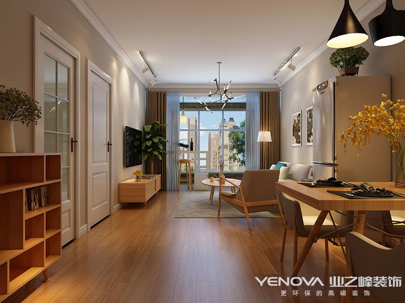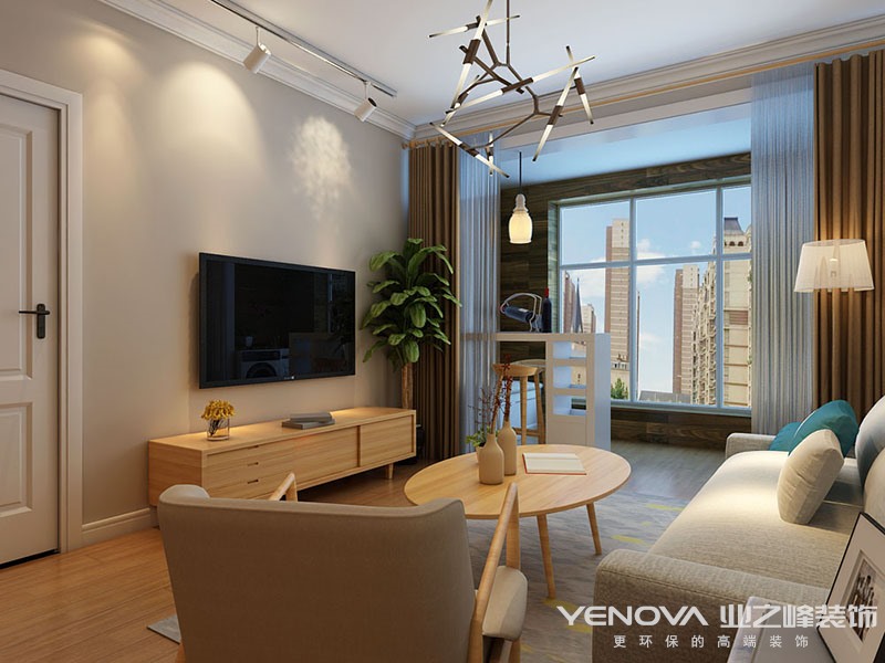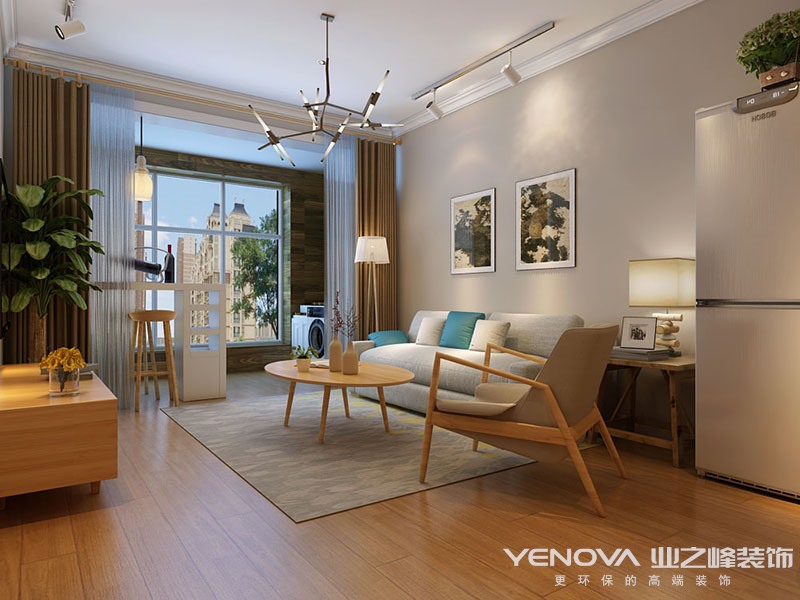 本案定义为北欧风格,房子的整体格局较为方正,客餐厅一体式设计让小户型也拥有通透的大视觉感。客厅布局以“简约、舒适、生活化”为宗旨, 一席厚软的高级灰沙发、一张单人沙发椅和一张不占据位置的原木茶几,轻松勾勒出居家舒适度。