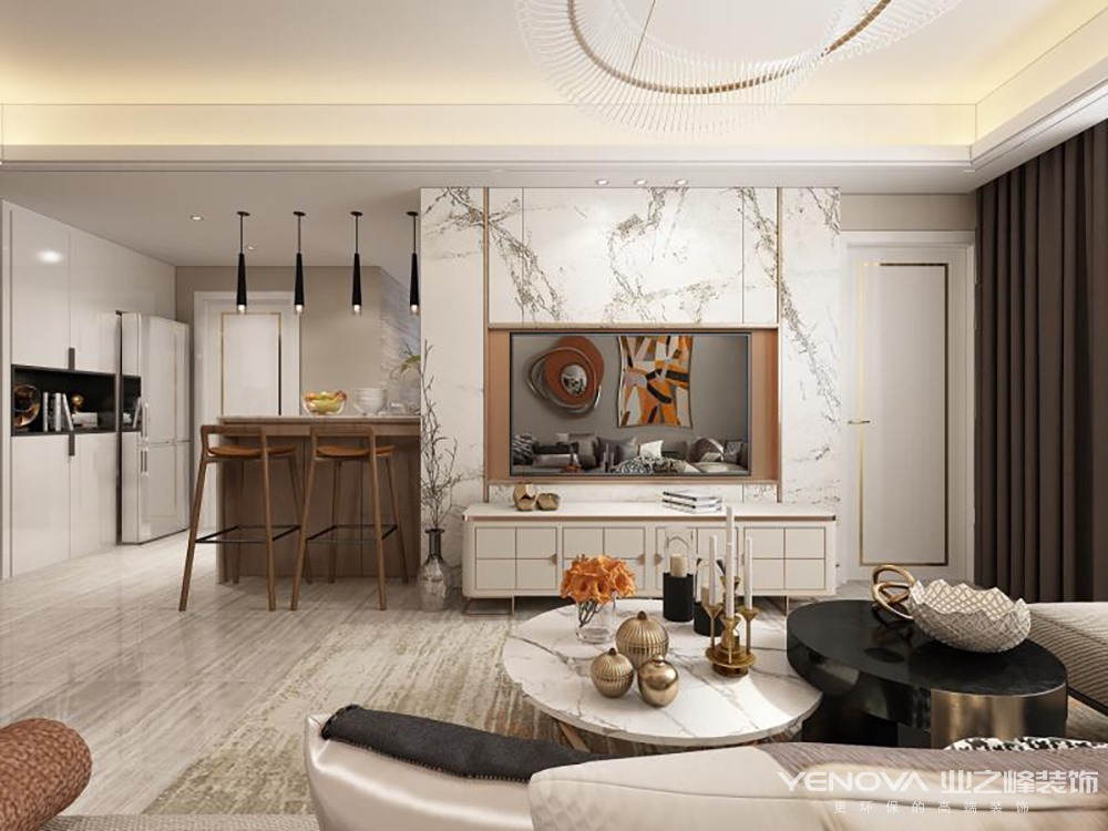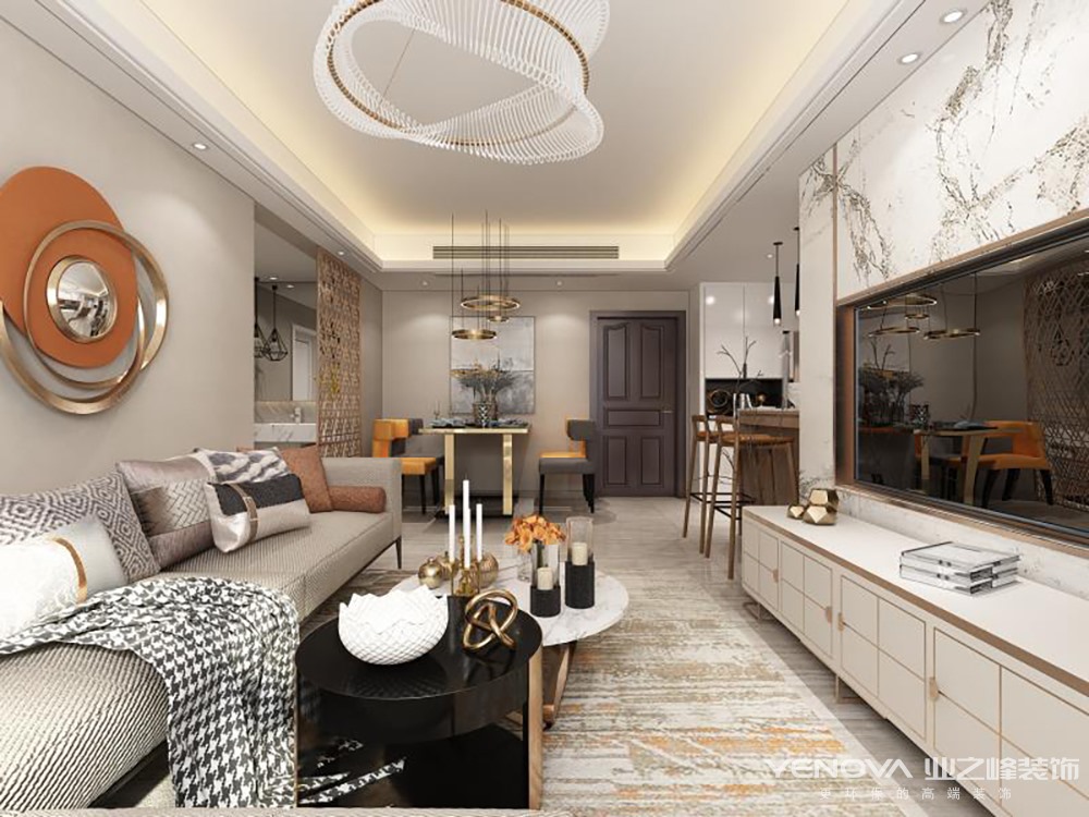 所谓轻奢,实际上是以极致简约风格为基础,摒弃一些如欧式、法式等风格的复杂元素,以更简洁的、硬朗的直线条代替,如选用平滑的门板造型,简单的墙板等没有过多的雕刻修饰,通过一些精致的软装元素来凸显质感,同时也浓缩着意想不到的功能与细节,从而彰显了一种高品质的生活方式。轻奢风格注重硬装修手法的简洁,但也并不像一般的简约风格那样随意。看似简洁朴素的外表之下却常常折射出一种隐藏的贵族气质,这种气质大多数通过一些精致软装元素来实现的