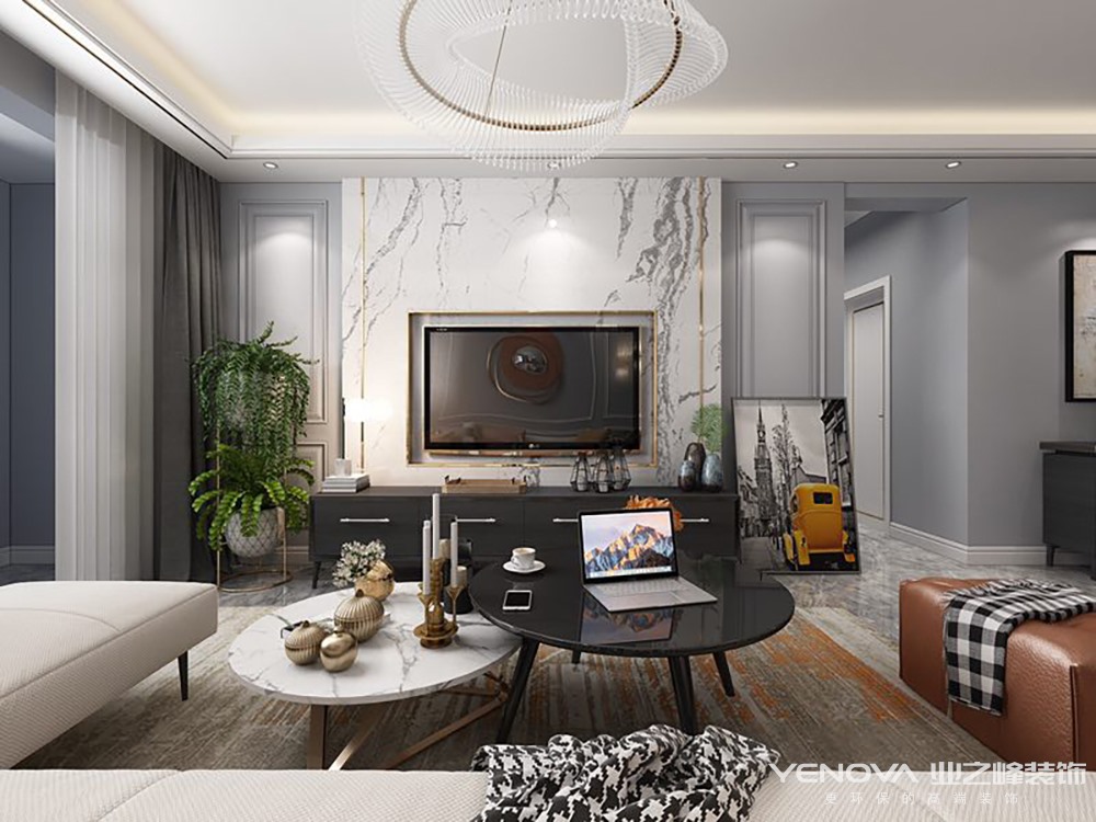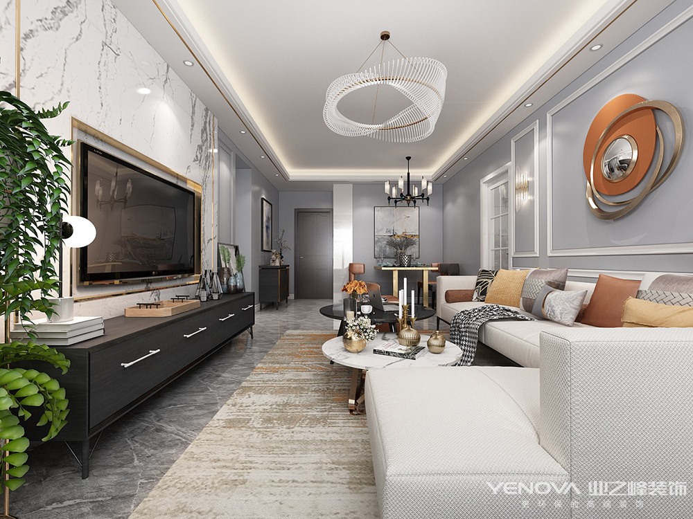 所谓轻奢,实际上是以极致简约风格为基础,摒弃一些如欧式、法式等风格的复杂元素,以更简洁的、硬朗的直线条代替,如选用平滑的门板造型,简单的墙板等没有过多的雕刻修饰,通过一些精致的软装元素来凸显质感,同时也浓缩着意想不到的功能与细节,从而彰显了一种高品质的生活方式。轻奢风格注重硬装修手法的简洁,但也并不像一般的简约风格那样随意。看似简洁朴素的外表之下却常常折射出一种隐藏的贵族气质,这种气质大多数通过一些精致软装元素来实现的