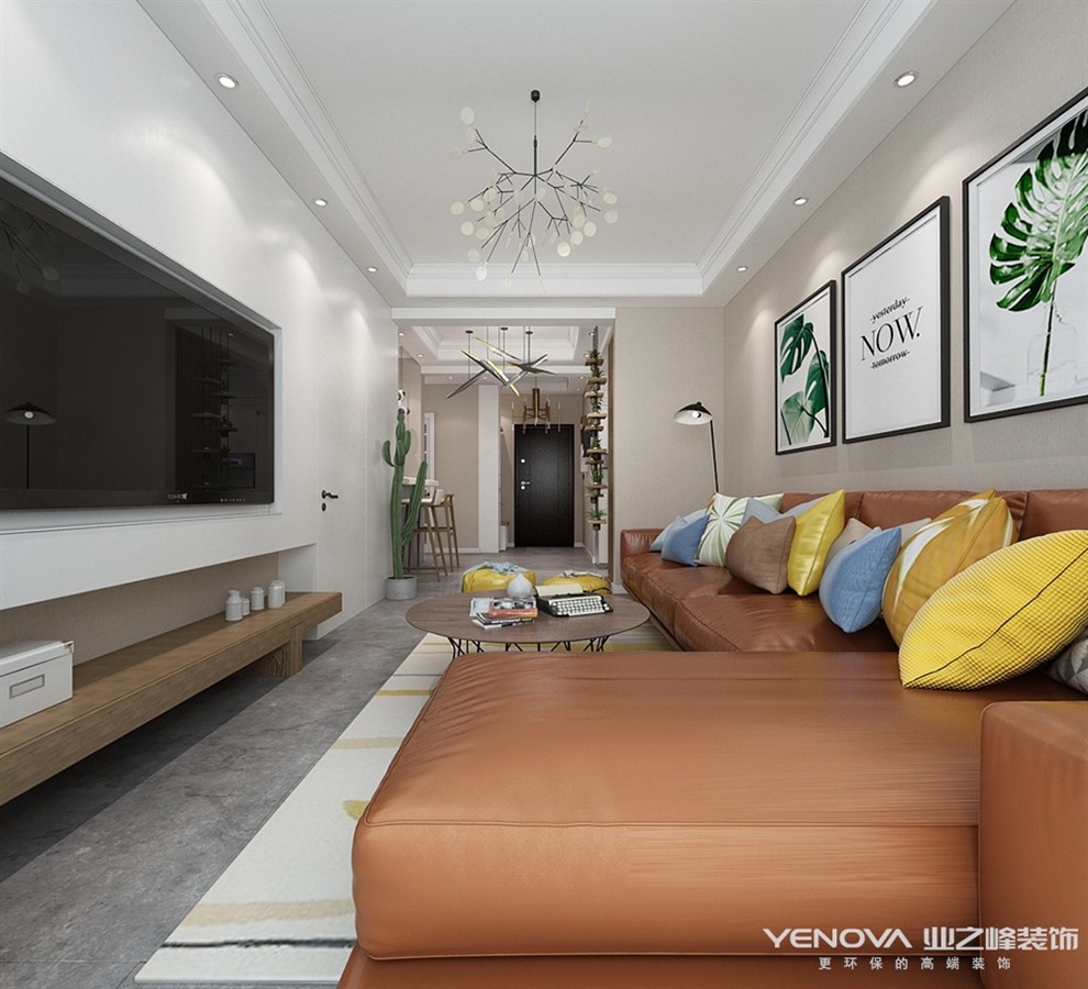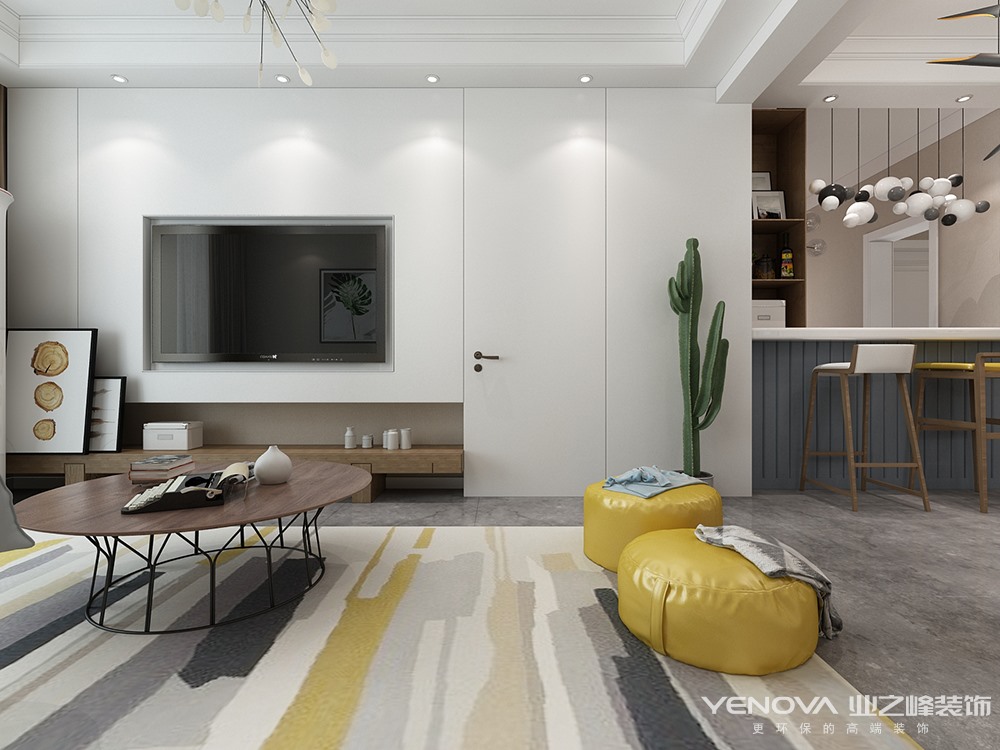 本方案客厅设计采用简约明朗的线条,电视背景墙的设计更是体现了现代简约的性格特点。