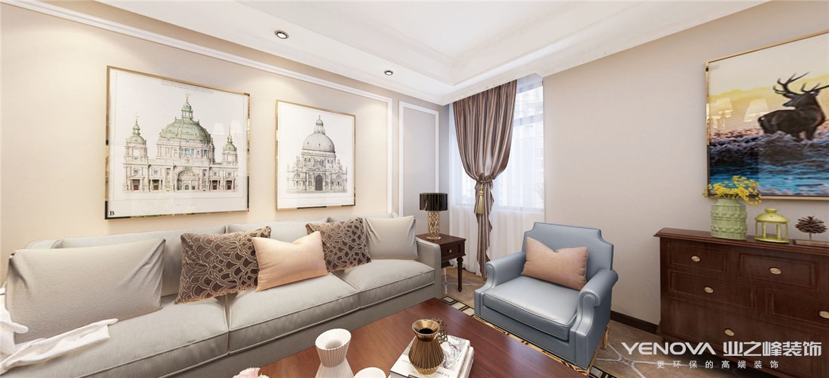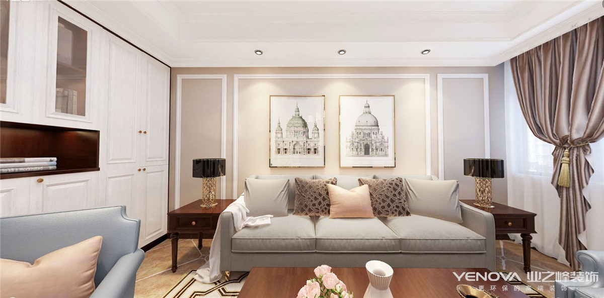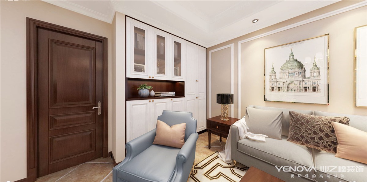 一个128㎡两房两厅户型,南北通透,各空间面积分布合理,比例协调,本案业主的工作原因,常年在北京生活,这所房子是为老两口养老所设计的居所,这次是改造老两口的老房子,业主希望我们能够处理房屋露水问题,有个舒适的家,精彩的设计来自苦心经营,看似简单的背后却有缜密的思考。本案设计风格为简美风格,有着美式的精致,温馨,但也没有美式的浮夸。本案设计简洁,功能完整,而在立面造型设计上,我们除了空间舒适性的色彩搭配,也对空间的功能性和实用性作为设计的重点,本案业主是典型的知识分子,有着许多的书籍,所以我们把客厅兼顾书房的的功能性,满足了合理的储物空间,也有着完整的功能性,有着看书,阅读,待客谈话的使用功能,充分的满足顾客的兴趣需求。客厅软装这一块我们采取稍微深沉的温柔感觉,一个温馨,舒适,明亮的家立即呈现出来。地砖我们所采用的是美式仿古砖,具有古典的独特韵味,也有着岁月的沧桑和历史的厚重,美式仿古砖的花色与纹理方面十分精致,打造不一样的质感和空间感,同时也具有十分良好的防滑效果和防污性能,我们整体的搭配让空间更加的精致,从大的沙发餐桌餐边柜在到小的挂画,地毯等,或者一个抱枕一盆花,都会有一种精心的感觉,一个温馨,舒适的家庭艺术氛围立即呈现出来。