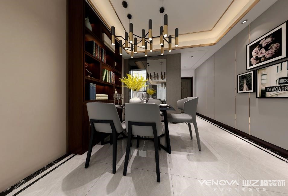 餐厅与厨房中间选用全开玻璃门,给整个空间增加了通透感的同时利于家庭成员的交流,活跃家庭气氛。餐桌旁的大书柜不但可以放置书籍,而且可以放置酒和装饰品,给单调的白墙增加了储物功能的同时也使得整个简约的空间变得更富生活气息。