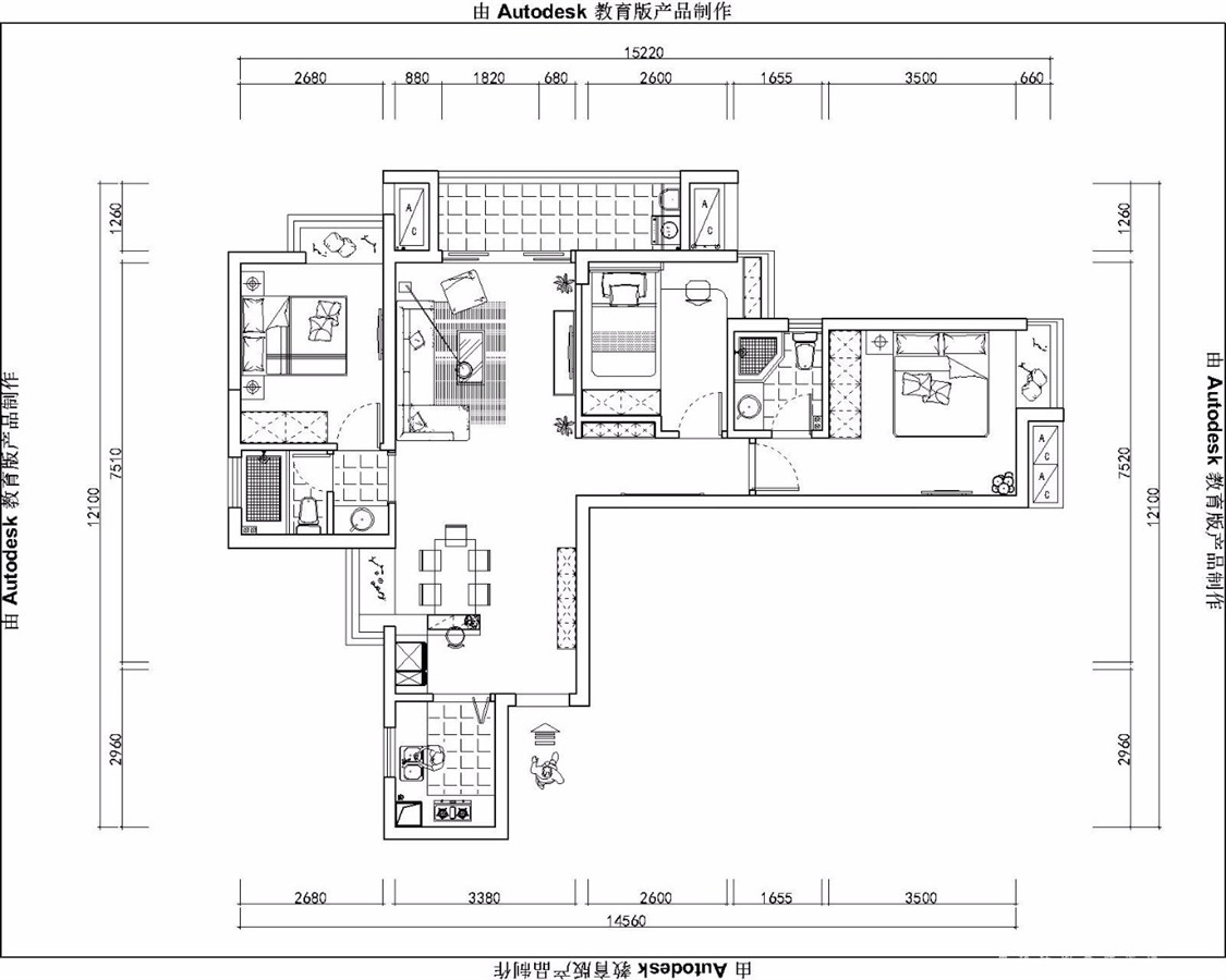 小区:招商公园1872 面积:103㎡ 户型:三居 风格:美式风格