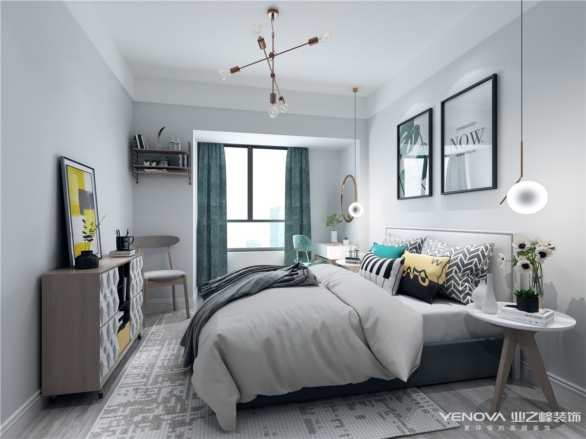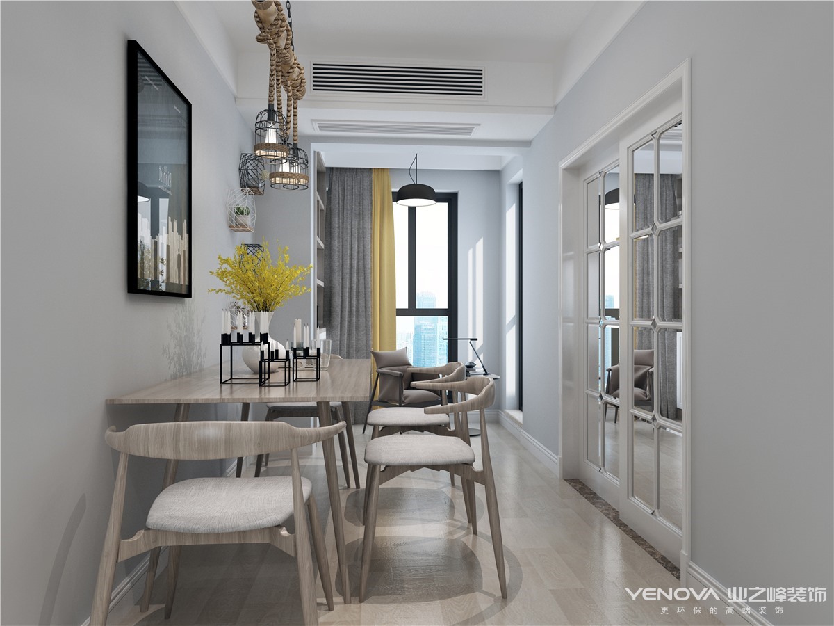 典型的北欧休闲硬装基础。高踢脚线、白墙、原木色地板、精致的工艺品,主卧以冷色系为主,搭配吊灯,尽显主人品味。餐厅窗边做了休闲吧椅,桌板是用原木有质感的,坐在这儿,耳边响起轻快的音乐,看着喜欢的书,这将是多么美妙。从这里跨过餐厅,走入客厅,到达阳台,地面传来的是丝丝暖意,也许这就是幸福的感觉。