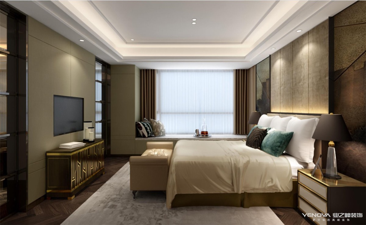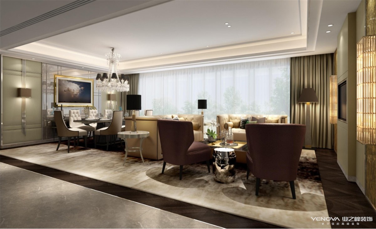 本次设计我们定位在新中式风格,220的空间有足够发挥的可能性,能达到业主对于环境与经历的契合。整个布局上,大气而不粗矿,线条明朗简洁,去除繁厚的装饰给业主后期维护带来不便的同时,素雅的家居看起来更加与人亲近,同时,教师的职业要求很高,对于细节的把控上,顶方下圆,取没有规矩不成方圆之意,方圆能体现出灵动的意境,符合户主教师的人生经历和追求。在空间上,许多地方留白,留,是一种智慧,戒盈自持,让家庭氛围更加轻松,和和气气的同时,不仅让空间更加灵动庄重,而且也方便了户主的行住坐卧,年纪大了,节省户主的精力也是我们的考虑。地面材料选择上,采用地板和复古花纹地砖相结合的方式,木材,是最有人情味的,材料来源于广阔自然,本身木香四溢的温暖是其他材料比不了的,铺在卧室的地板,卧室床头背景上的硬包加艺术墙纸,就能达到一种静心凝神的氛围,多功能厅也同样如此,而客厅和书房,则采用复古地砖,大气简洁,成熟而不拘束,给客人展现了主人家的品质,电视背景是石材加硬包加金属线条,无论是家人还是客人入座,都会由心的感受到尊贵,特别是书房,硬包加银镜金属线条收边的装饰,既不脱离书房学习的本质,又体现了庄重贵气,不拘一格的风格。由此,这套新中式风格的设计,才能体现出大气简洁,舒适温馨、高雅典范之感,才能展现主人家对生活和家庭的品质追求!