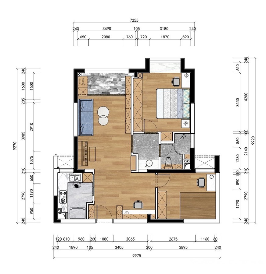 小区:东湖睿园 面积:78㎡ 户型:二居 风格:现代简约风格
