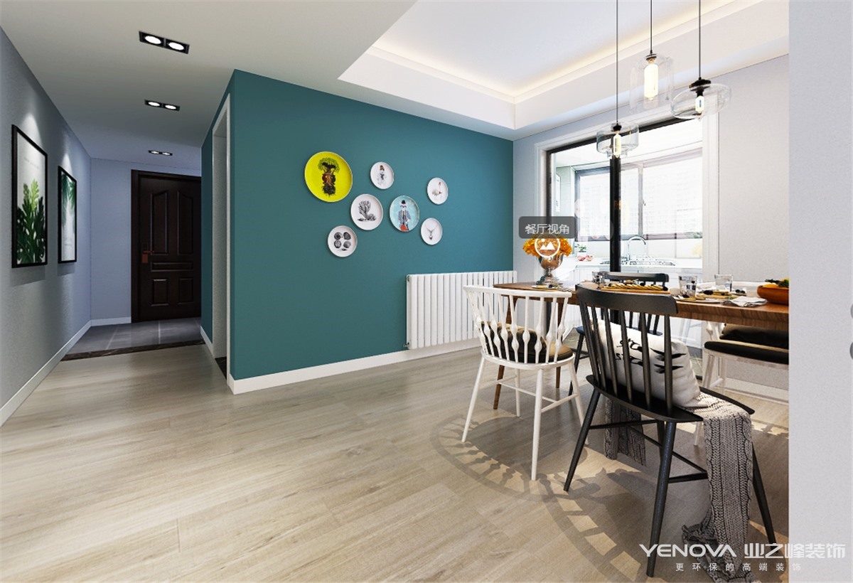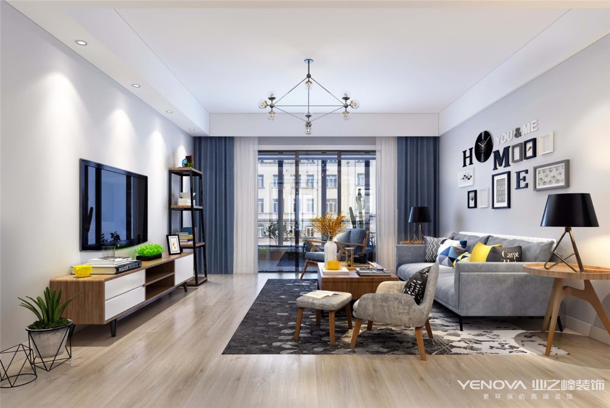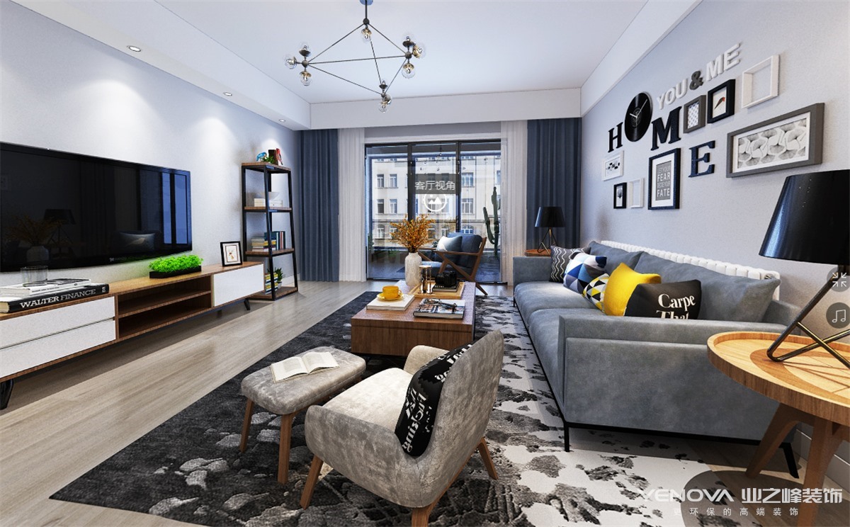 本案特别选用了北欧的设计主题。在有限的空间极大地利用了每个区域。入户门厅地面选用地砖铺设,考虑门厅作为一个入门空间和换鞋区域,后期活动比较频繁,选用地砖更加好打理。鞋柜选用定制高柜,不仅仅有收纳鞋子的功能,还可以储存生活的杂物,为空间增加了储存空间。入户门厅为了考虑到客户后期换鞋的舒适性,为其设计了一个换鞋凳,以备客户的日后之需,也不失美观性。客餐厅和卧室皆选用地板铺设,整个空间地面铺设形成了统一。客厅的沙发背景墙选用了挂画和挂饰作为点缀,营造出北欧风格的简约感。墙面都是选择艺术涂料,环保性能更高,颜色也比较纯正。餐厅背景墙选用了一个蓝灰色,选的颜色不张扬也不跳跃,蓝灰色与白墙形成一个撞色效果,让空间更加灵动活泼。家具的选择也都是造型感很强的,凸显出了干净洗练的空间氛围。尺寸上选用了小巧型,长沙发加上两个座椅,让空间更加灵动,既能满足日常的家居使用,也能达到整体搭配的美观性。餐厅布局上选择餐桌靠墙,能更好的留足过道空间,使空间更加宽敞,不拥堵。在细节上也着重考虑迎合整个空间气氛,吊灯和地灯同样是选用造型感十足的简单线条型。整个空间塑造体现出了客户对生活品味的追求。