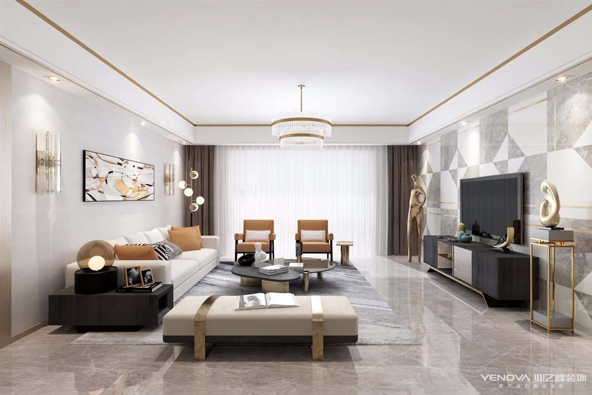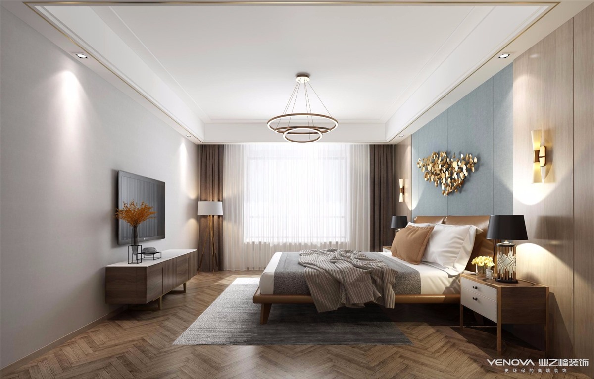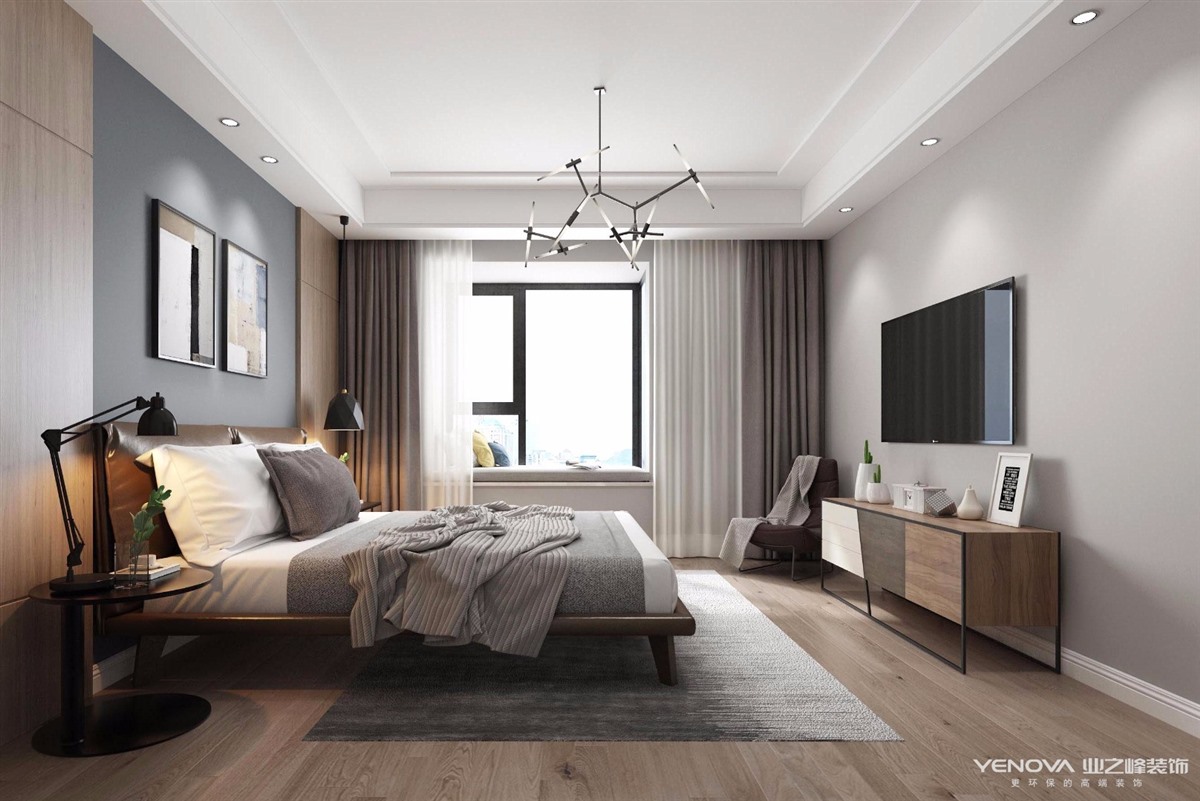 软装的选择在现代风格中尤为重要,家具搭配很重要,可以达到事半功倍的效果。而软装设计在一定的环境下所要呈现的出的亮点应与风格主题以及人体工程学相呼应。例如客餐厅主卧室背景墙在设计上取精致有美感的部分,摒弃多余的部分,利用浅色系的木饰面装饰床头背景墙,客餐厅在背景墙上的设计保留天然大理石的纹路。通过设定会客、餐饮、学习、睡眠的不同灯光会给人不同的感受。例如在会客厅和餐饮厅以及学习的区域应当选择冷色调灯光,睡眠区域可选择暖色灯光,可减少人的视觉疲劳。材料上的使用织物和简单的金属线条,一方面控制造价,一方面增加环保性等。适度的装饰是家居不缺乏时代气息,使人在在空间得到精神和身体的放松,并紧跟着时尚的步伐。这样的设计,让家多了一些温馨,特别是走道和卧室,窗明几净,富有个性,温情脉脉,让人忘记城市的喧嚣。