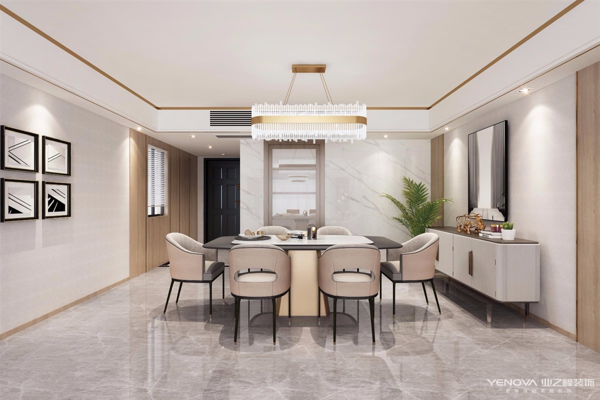 本案风格定位为现代简约风格,业主偏向于简洁大气的视觉感和材料的使用环保性,设计师在满足其基本需求上创造更多的收纳空间。本案在保留原户型的结构上增加软装的设计,让空间在使用上创造最大化利用率,并且不会阻碍视觉上的一体化。空间利用合理,功能满足业主需要,小孩房预留可做客房使用。设计师在选材上不再局限于石材,木材,面砖等天然材料。而是将范围选择扩大到金属,涂料玻璃以及合成材料,并且夸张材料之间的结构关系,空间的划分也不再局限于硬质墙体,而是着重于会客,餐饮,学习,睡眠之间的逻辑关系,通过吊顶和家具装饰达到一个空间的划分。设计师利用装饰画、织物的选择在餐厅空间中的色彩上起到点缀的作用。利用简单的线条,光线、吊顶、地面材料来表达不同的空间功能的划分。现代风格已经摒弃了一味的简洁和色彩单一的特点,更多的注重个性化和创造性的表现。设计讲究留白。