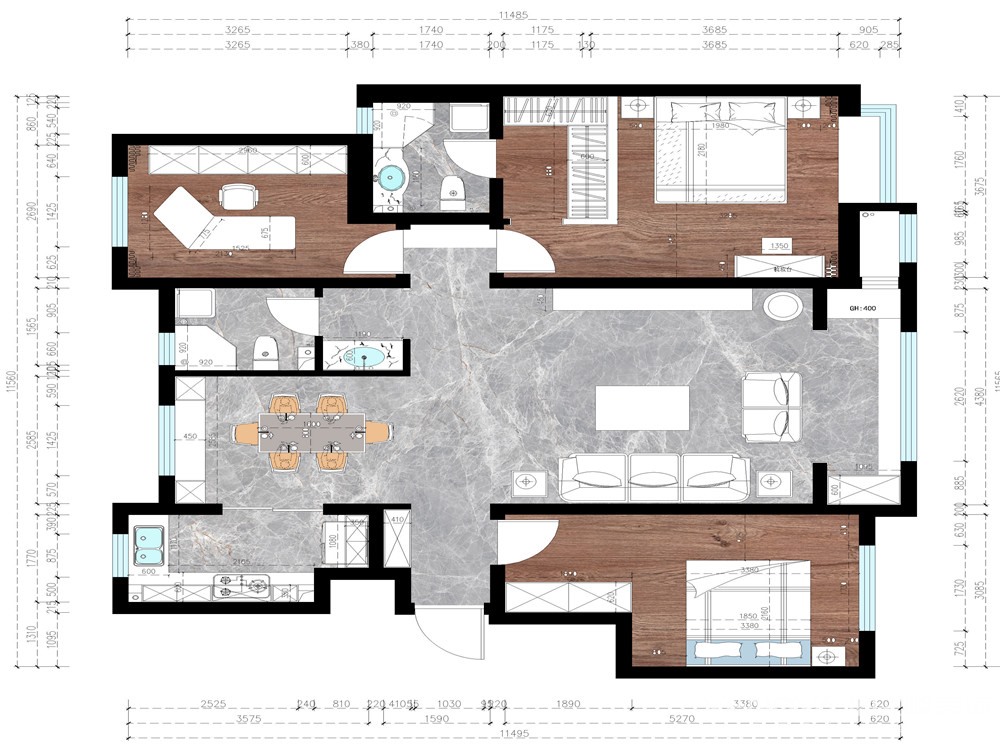小区:金地艺城华府 面积:135㎡ 户型:三居 风格:现代简约风格